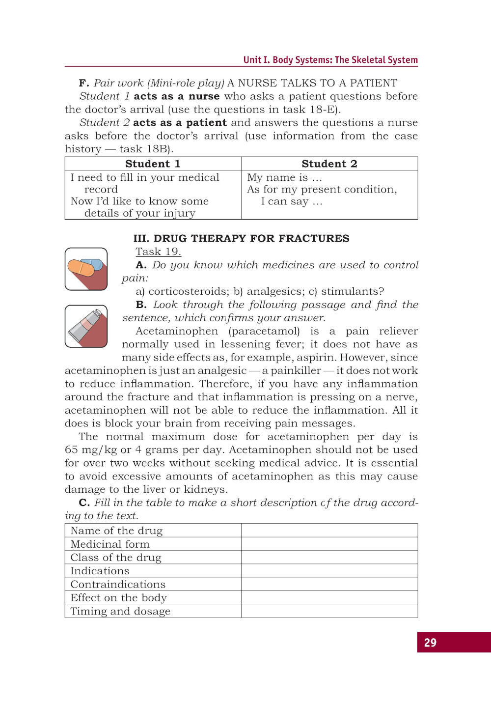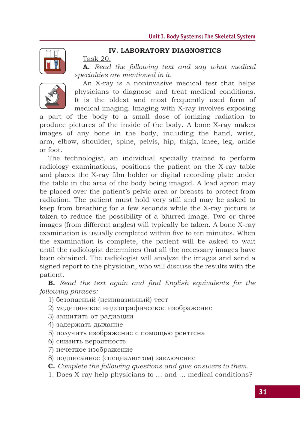 Данное издание представляет собой базовый курс учебного комплекса «Английский язык для медицинских училищ и колледжей». Первая часть комплекса «Английский язык. Вводный курс» направлена на формирование начальных умений чтения и перевода научно-популярного текста, а также умений устного общения на темы, связанные с будущей профессией учащихся. Целью настоящего курса является формирование и развитие базовых умений работы с более сложными источниками информации - научными и специальными медицинскими текстами. Предложенная авторами система заданий формирует у учащихся алгоритм анализа и чтения англоязычных текстов, обеспечивающий их понимание, извлечение необходимой информации и фиксацию полученной информации различными способами (выполнение письменного перевода, составление аннотации, заполнение таблиц, содержащих определенные факты, и др.). Развитие умений устного общения также ориентировано на коммуникацию в условиях профессиональной деятельности. Учебник снабжен ключами к заданиям, что позволяет использовать его и для самостоятельной работы учащихся. Учебник предназначен студентам медицинских училищ и колледжей.| Издательство | ГЭОТАР-Медиа |