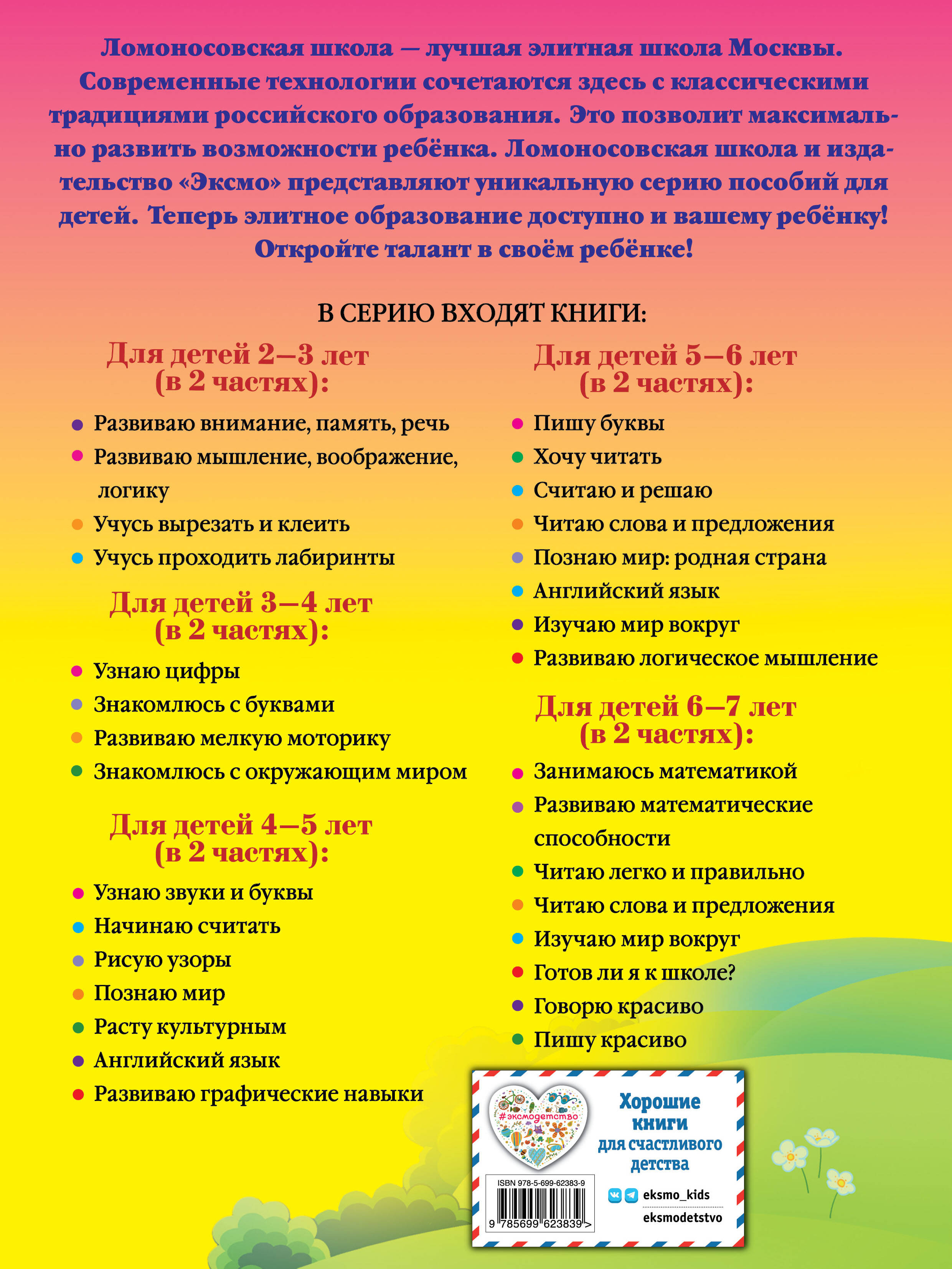 Ломоносовская школа - лучшая элитная школа Москвы. Современные технологии сочетаются здесь с классическими традициями российского образования. Это позволяет максимально развить возможности ребенка. Издательство «Эксмо» и Ломоносовская школа представляют уникальную серию пособий для детей. Теперь элитное образование доступно и вашему ребенку! Откройте талант в своем ребенке!| Издательство | Эксмо |