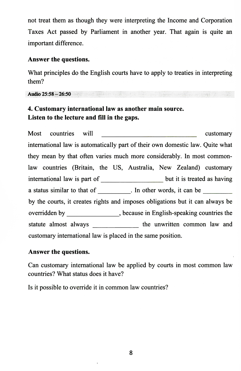 Английский язык для юристов: Учебное пособие к видеолекциям по международному праву. Уровни В2-С1