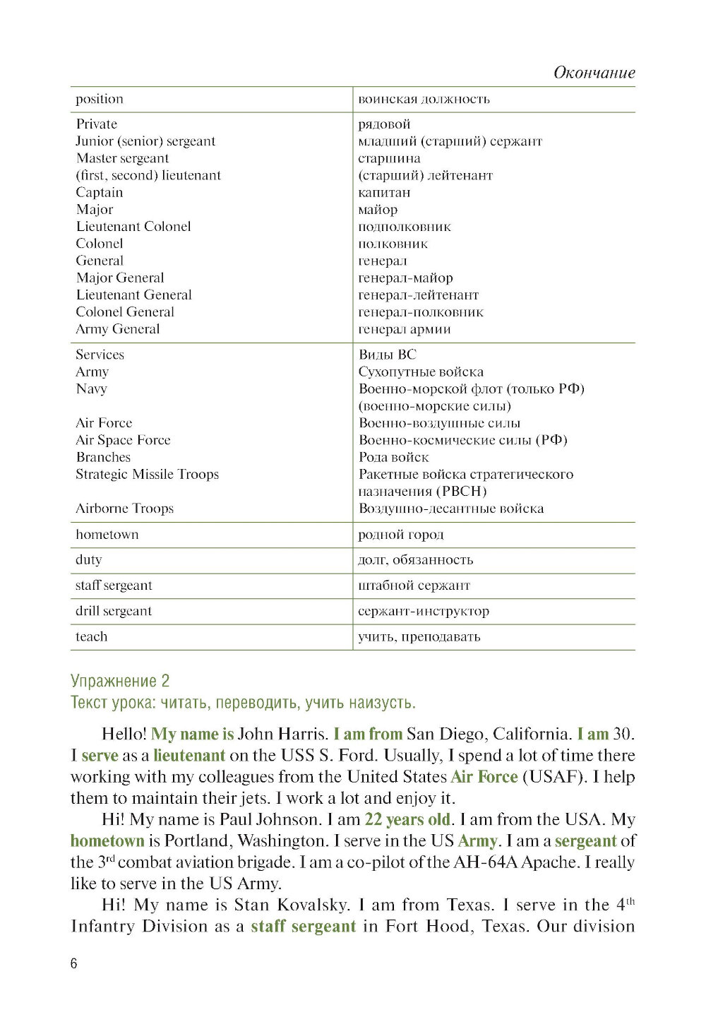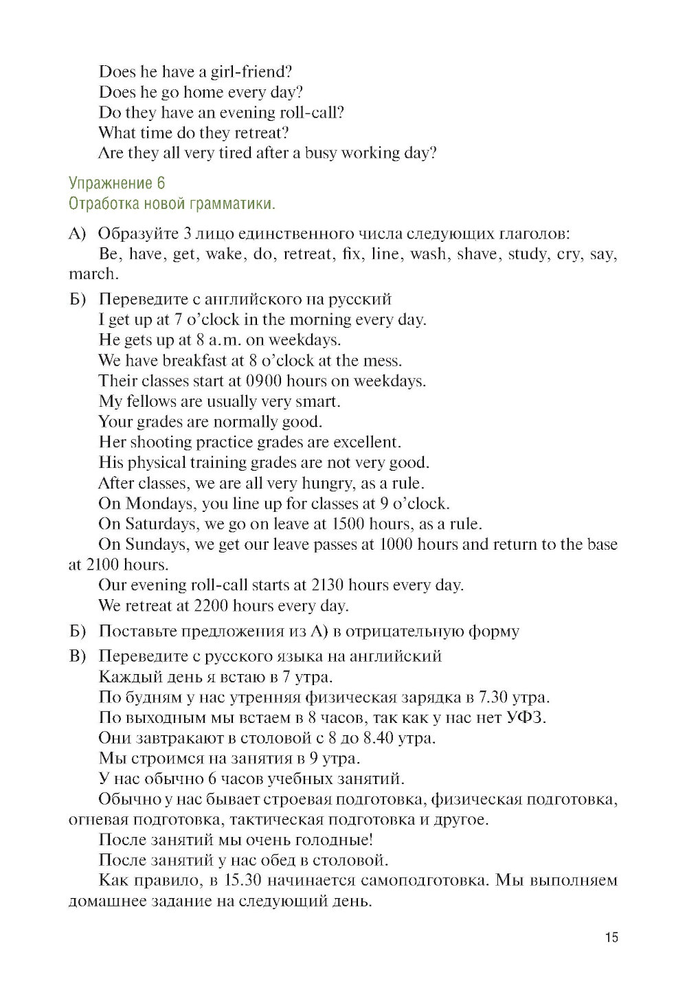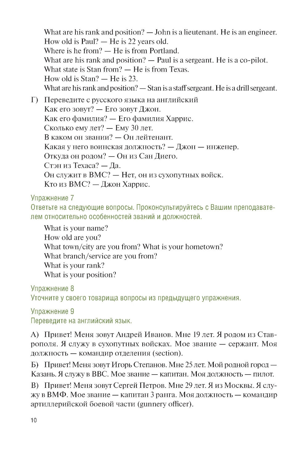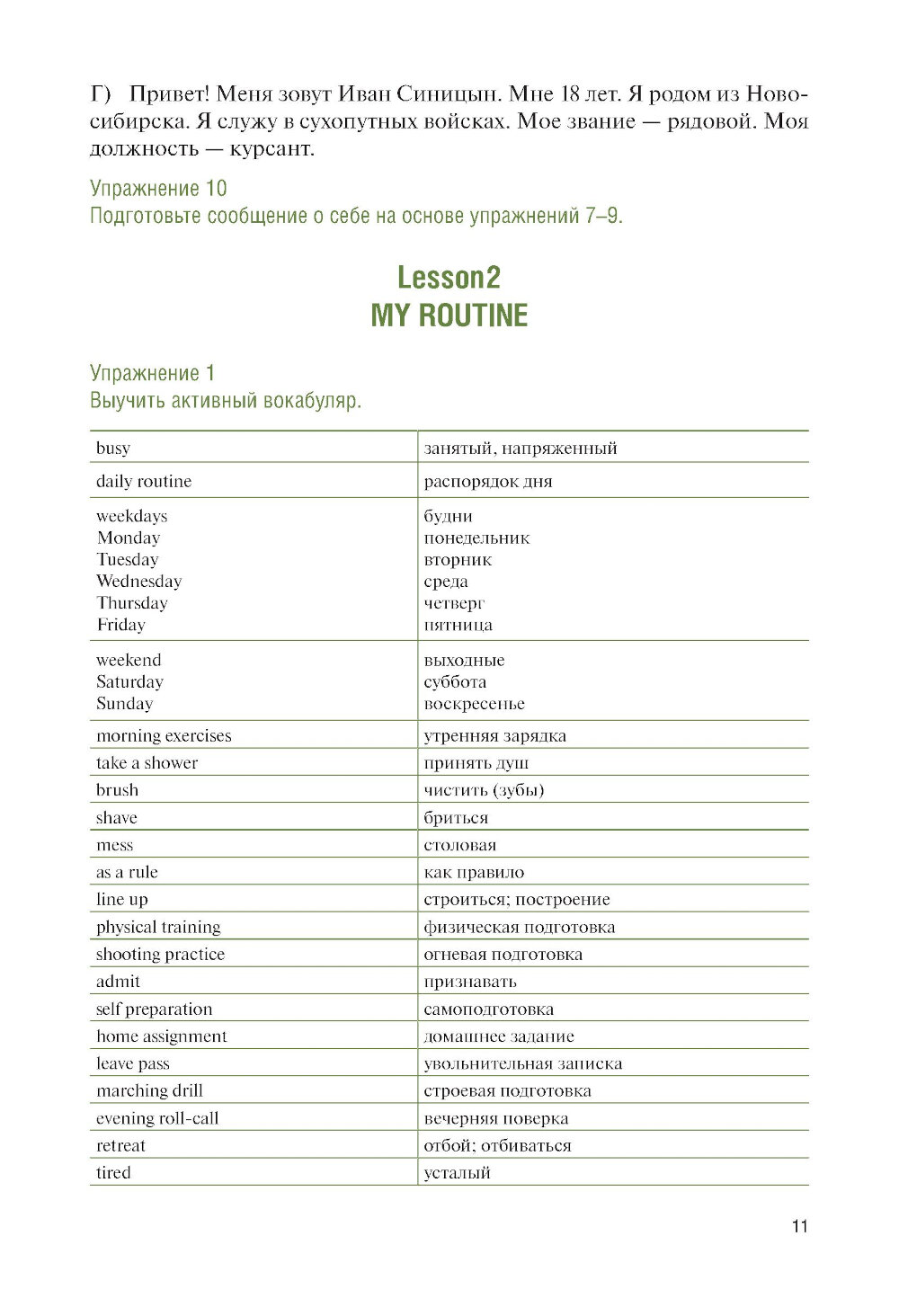 Цель - вывести обучаемых за пределы ситуаций общения, относящихся к военной службе. Лексические темы расширены до общеупотребительных, таких как «Посещение врача», «Посещение музея». Включены дополнительные материалы, чтобы помочь преподавателю разнообразить уроки и углубить знания обучаемых. Среди них тексты для чтения и обсуждения, тексты информационного характера об иностранных военных вузах, видеокурс для отработки навыков аудирования и другие сведения, помогающие лучше понять англоязычную культуру. Использованы данные из открытых иностранных источников. Соответствует ФГОС ВО последнего поколения. Для студентов бакалавриата, специалитета и магистратуры, обучающихся по специальностям, не связанным с профессиональным владением языком.