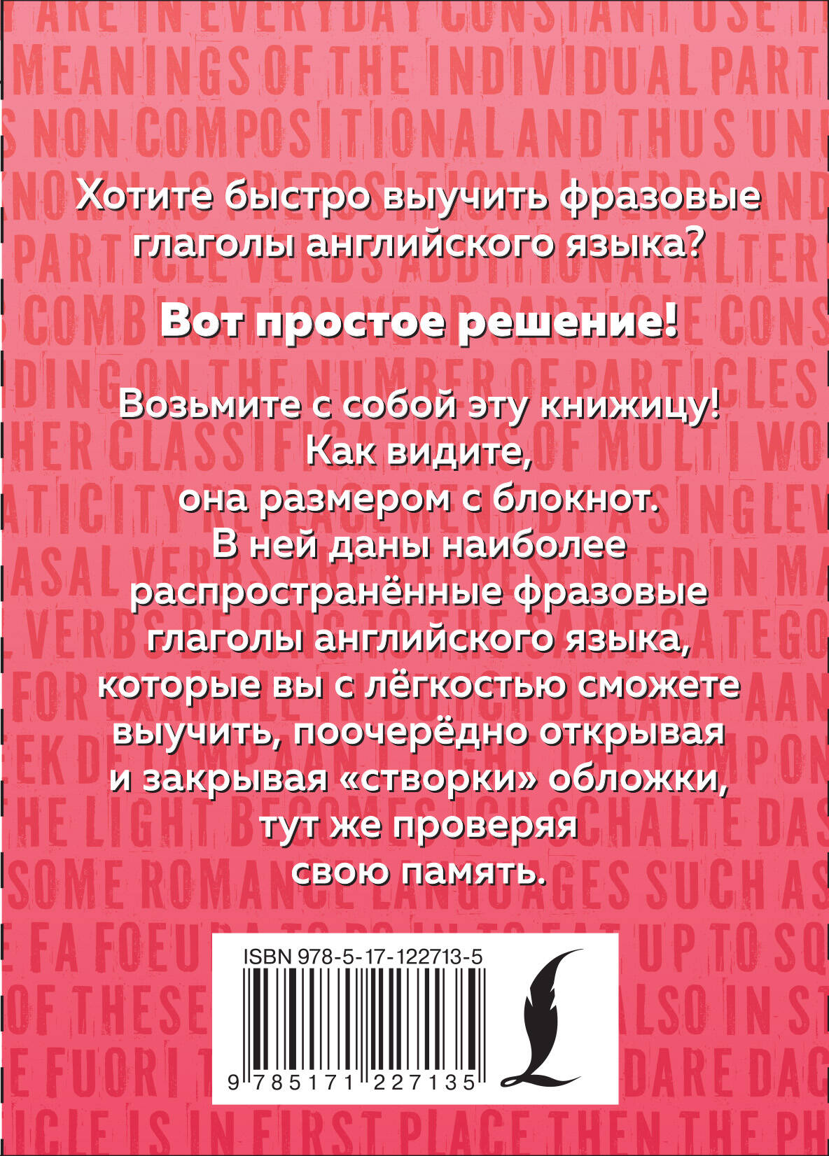 Хотите быстро выучить фразовые глаголы английского языка? Вот простое решение! Возьмите с собой эту книжицу! Как видите, она размером с блокнот. В ней даны наиболее распространённые фразовые глаголы английского языка, которые вы с лёгкостью сможете выучить, поочерёдно открывая и закрывая "створки" обложки, тут же проверяя свою память.| Издательство | ИЗДАТЕЛЬСТВО "АСТ" |