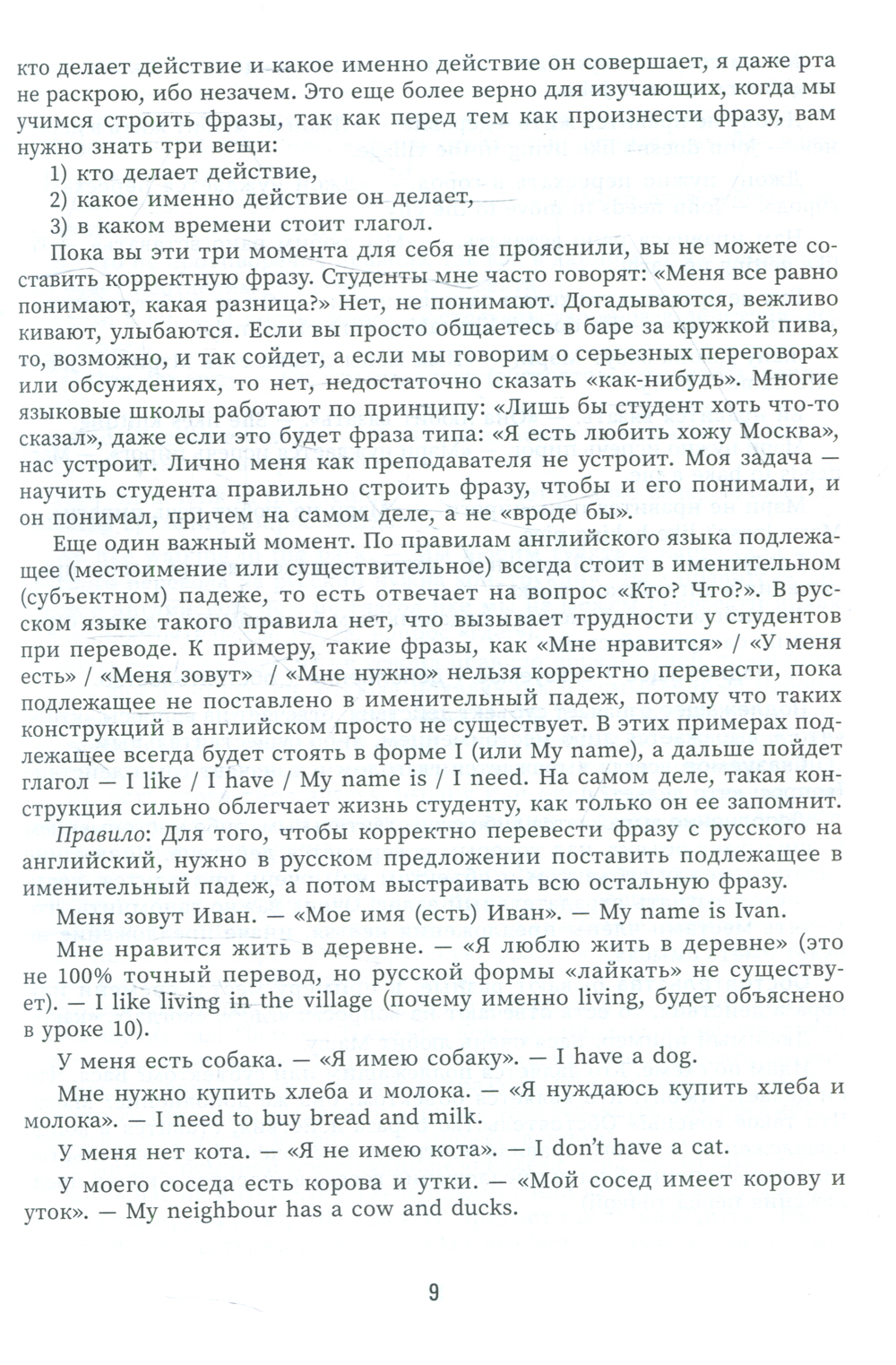 Практическая часть (примеры) написана носителем языка, что исключает русицизмы и некорректные конструкции.
