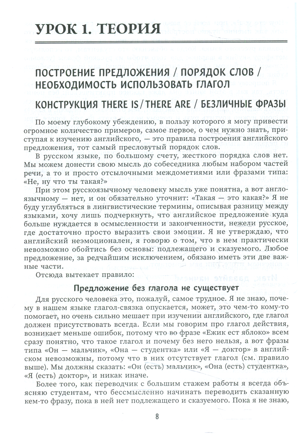Книга представляет собой авторское учебное пособие по базовой грамматике с подробным объяснением правил построения английских предложений и употребления времен глагола. Эта книга для вас, если вы уже начинали изучение английского языка, умеете читать и немного понимаете на слух, но не знаете, как правильно построить фразу, и путаетесь во временах.