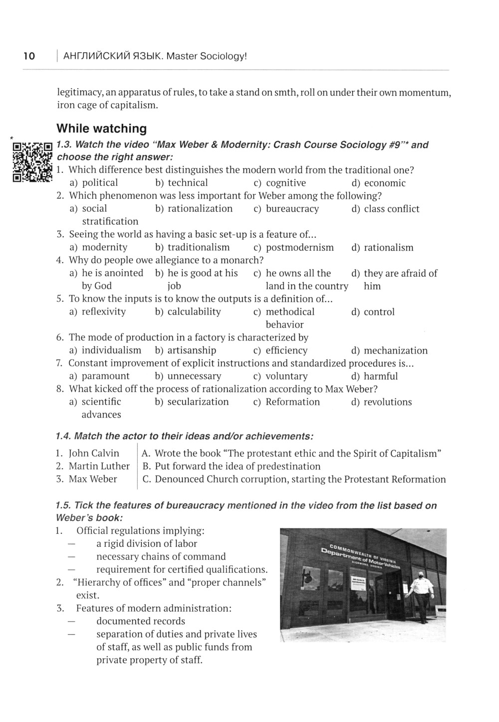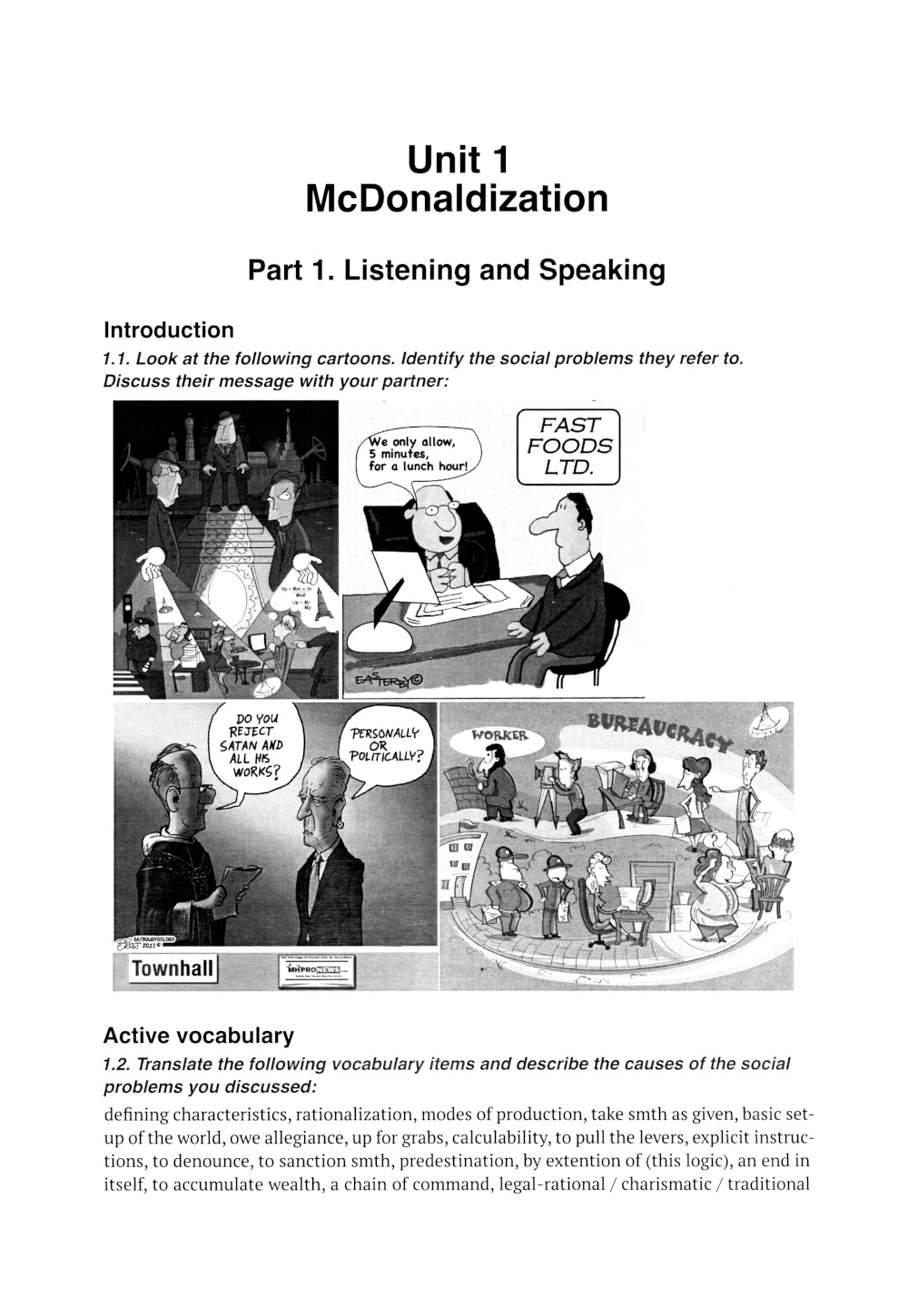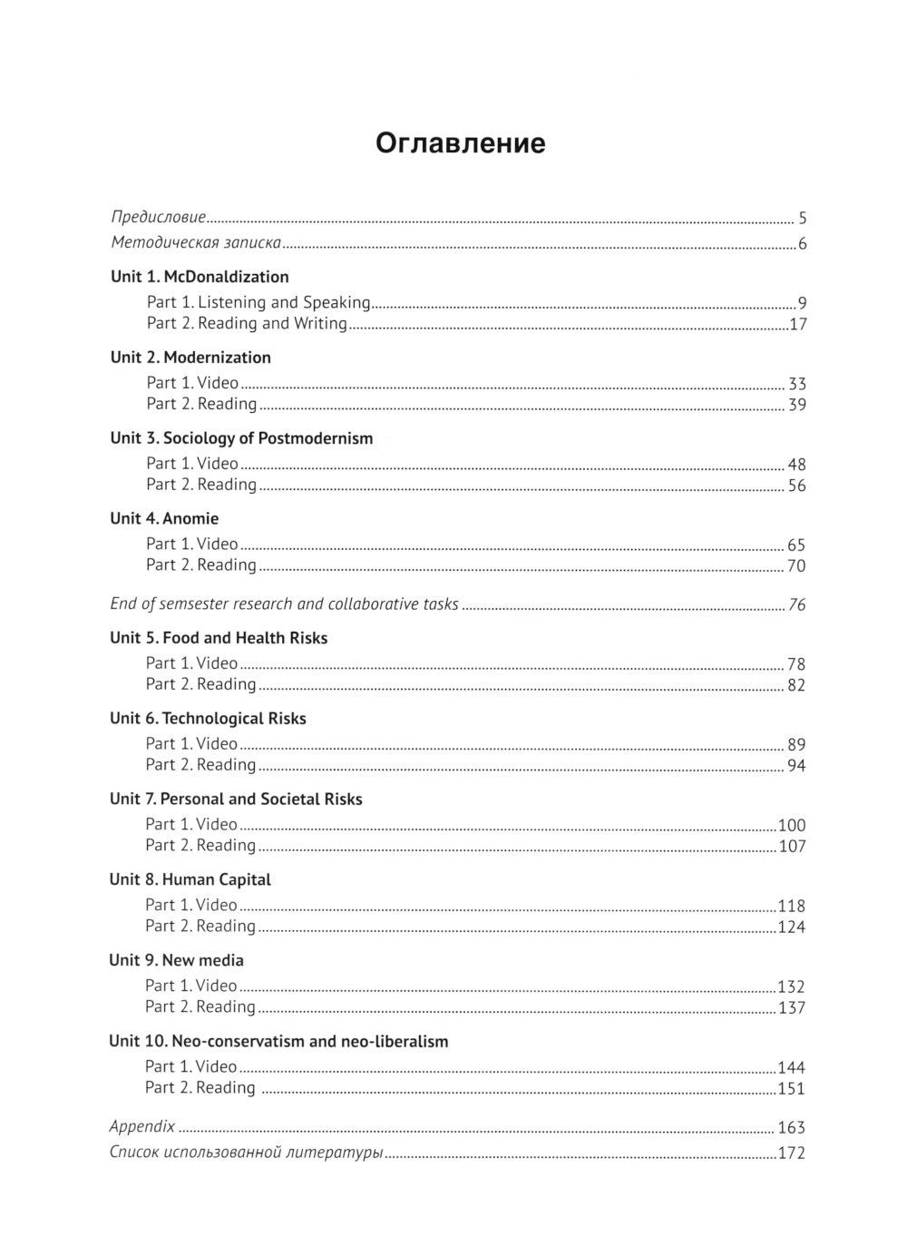 Учебное пособие предназначено для формирования у студентов профессиональных и общекультурных компетенций, необходимых для выполнения различных видов профессиональной речевой деятельности на английском языке в области социологии. Пособие направлено на формирование навыков общения на профессиональные темы с использованием социологических терминов, чтения, обсуждения, анализа и реферирования англоязычных статей и монографий по социологии, написания научных работ на английском языке. В пособии отражены такие актуальные темы современной социологии, как макдональдизация, модернизация, постмодерн, аномия, различные виды рисков, влияние СМИ, человеческий капитал, неоконсерватизм и неолиберализм. Для студентов магистратуры факультета международной журналистики МГИМО МИД России, обучающихся по программе подготовки «Социологическая диагностика и экспертиза управленческой деятельности» и изучающих английский язык.| Издательство | МГИМО-Университет |