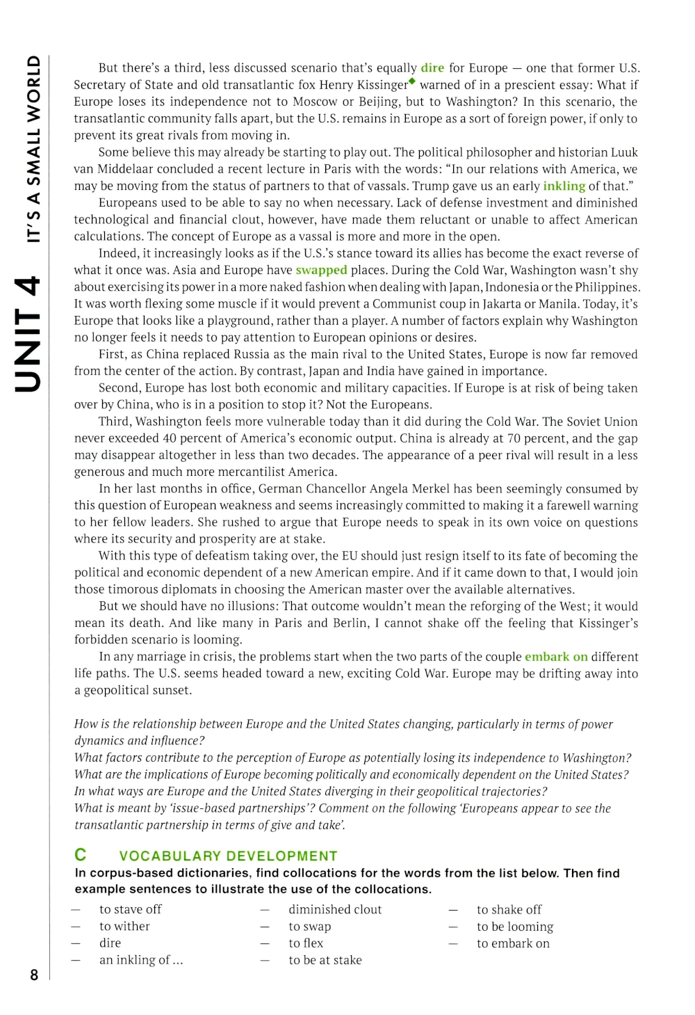 Учебник предназначен для формирования компетенций, необходимых для профессионального иноязычного общения будущего специалиста-международника. В учебнике представлены материалы, отражающие наиболее важные и актуальные профессионально ориентированные и общественно значимые вопросы, затрагивающие мировые политические, экономические, демографические, миграционные и экологические процессы. Учебник отличает системный подход к обсуждению и анализу сложных аутентичных текстов, сопровождающихся системой упражнений. Теоретический материал представлен в виде рекомендаций по работе над заданиями различных форматов и развитием языковых навыков. Для студентов факультетов международных отношений, обучающихся по направлениям подготовки «Международные отношения», «Политика и международные отношения», «Большие данные и моделирование международных отношений», «Дипломатия и политика зарубежных стран», «Международные отношения, управление и право» и владеющих английским языком на уровне В2-С1.| Издательство | МГИМО-Университет |