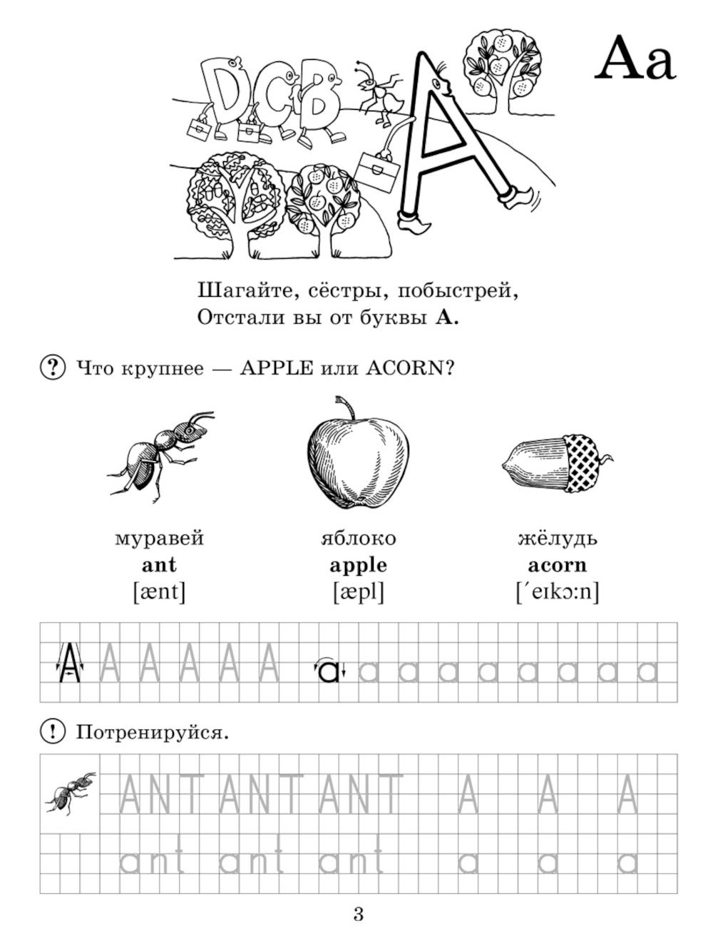 Книга адресована детям, начинающим обучение английскому языку. Даже тем заботливым родителям, которые не изучали английского языка в школе, с этой книгой будет легко и просто научить своих детей основам чтения и письма. В этом поможет игровая форма, в которой подаётся учебный материал. В книгу вошли стихи-загадки, в которых обыгрываются названия букв английского алфавита, а также сюжетные картинки, иллюстрированный словарик, прописи, занимательные задания. Пособие поможет запомнить английский алфавит, научиться писать буквы, выучить несколько десятков слов, а главное - полюбить английский язык.| Издательство | ИД ЛИТЕРА |