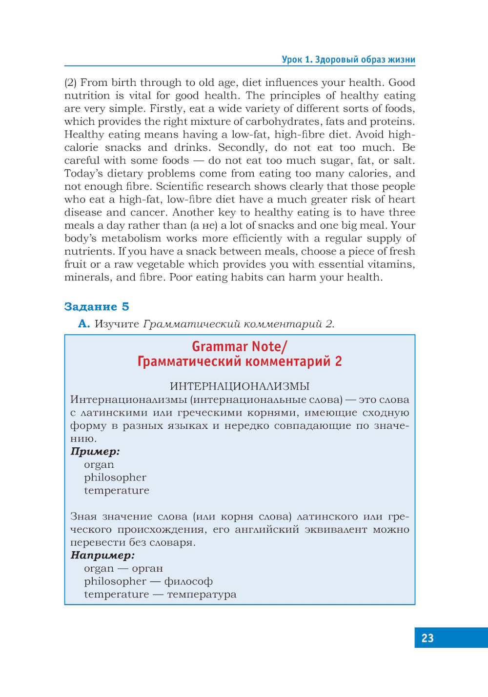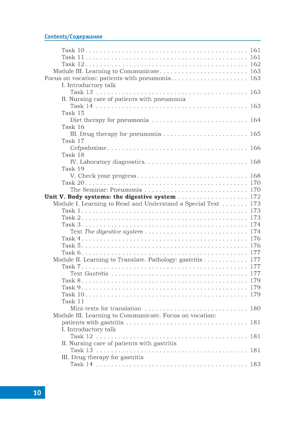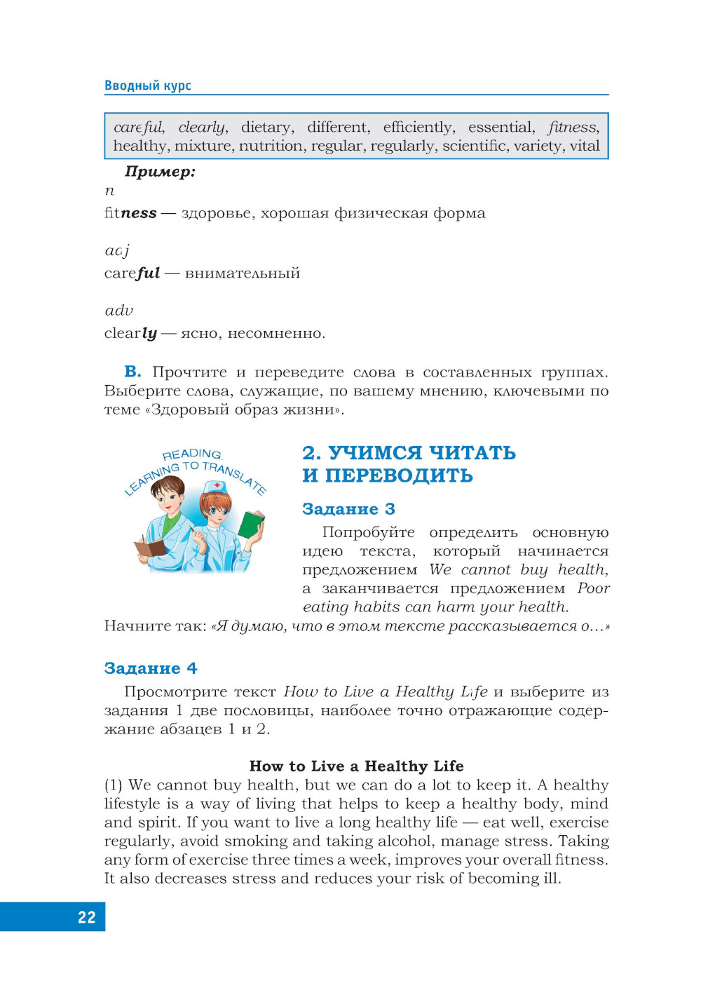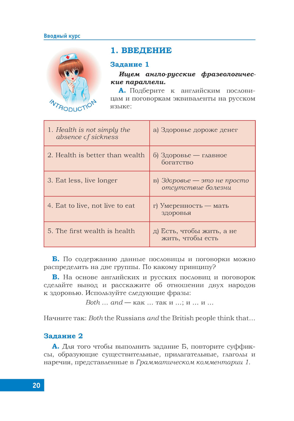 Данное издание представляет собой полный курс английского языка для медицинских училищ и колледжей, состоящий из двух частей. Первая часть комплекса - вводный курс - направлена на формирование начальных умений чтения и перевода научно-популярного текста, а также устного общения на темы, связанные с будущей профессией обучающихся. Вторая часть - основной курс - имеет целью формирование и развитие умений и навыков работы с более сложными источниками информации - научными и специальными медицинскими текстами. Предложенная авторами система заданий формирует у обучающихся алгоритм анализа и чтения англоязычных текстов, обеспечивающий их понимание, извлечение необходимой информации и ее фиксацию различными способами (выполнение письменного перевода, составление аннотации, заполнение таблиц, содержащих определенные факты, и др.). Развитие умений устного общения также ориентировано на коммуникацию в условиях профессиональной деятельности. Авторская методическая концепция обучения иностранным языкам "для специальных целей" обеспечивает обучающихся знаниями, умениями и навыками, необходимыми для дальнейшего самостоятельного изучения и использования иностранного языка в условиях профессиональной деятельности. Учебник снабжен англо-русским словарем (с транскрипцией), ключами к ряду заданий, что создает условия для активной самостоятельной работы обучающихся. Учебник предназначен студентам медицинских училищ и колледжей, а также учащимся медицинских классов общеобразовательных школ.| Издательство | ГЭОТАР-Медиа |