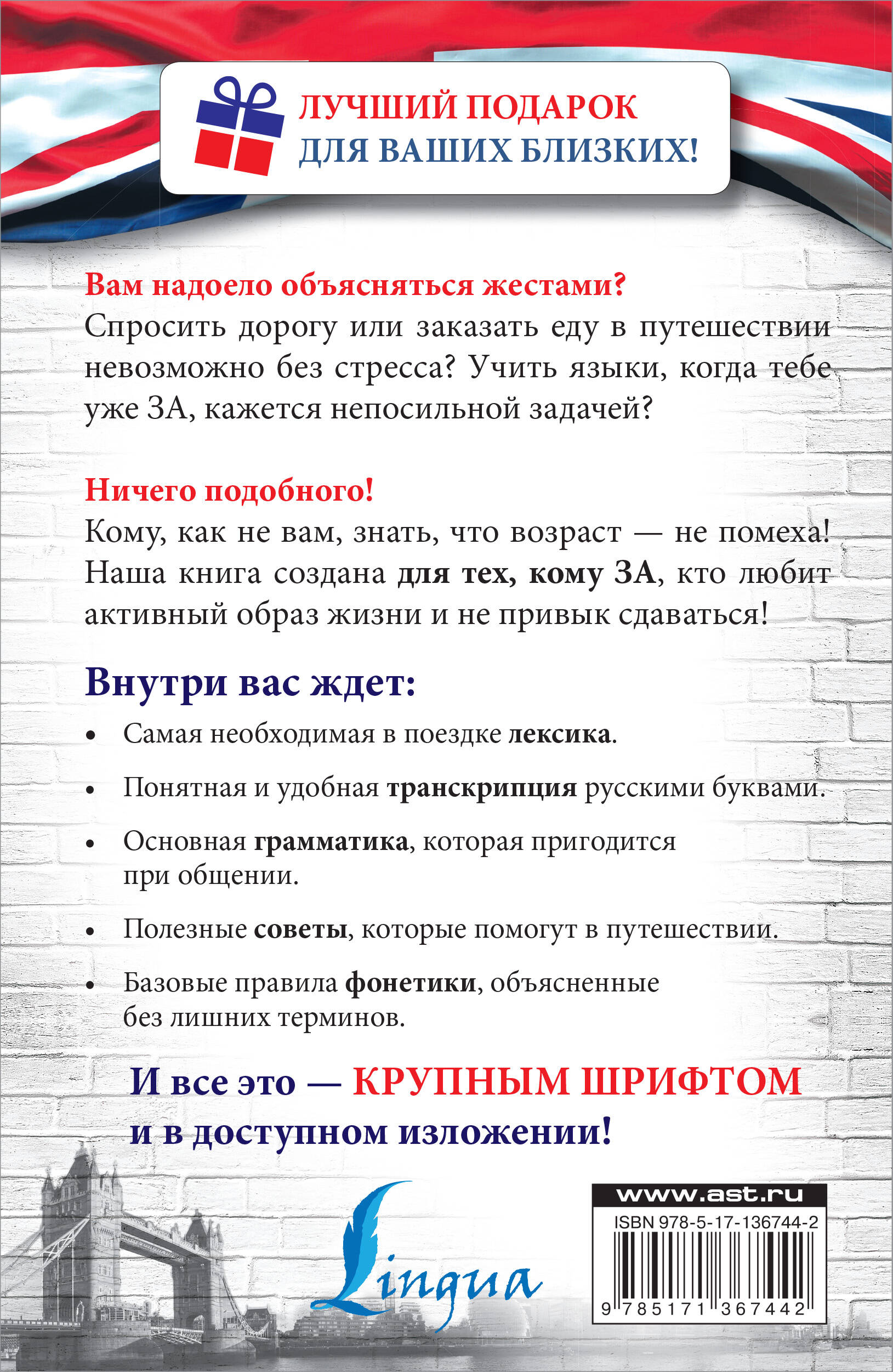 Данный разговорник создан специально для тех, кто считает, что говорить на английском за границей - безнадежная задача. Книга состоит из 8 тем, каждая из которых отражает самые основные проблемы, возникающие при общении в поездке. Вы узнаете, как заказать еду в ресторане, спросить дорогу или объясниться в экстремальной ситуации. Также в конце книги вы найдете словарь основной лексики. И все это - крупным шрифтом и в доступном изложении!| Издательство | ИЗДАТЕЛЬСТВО "АСТ" |