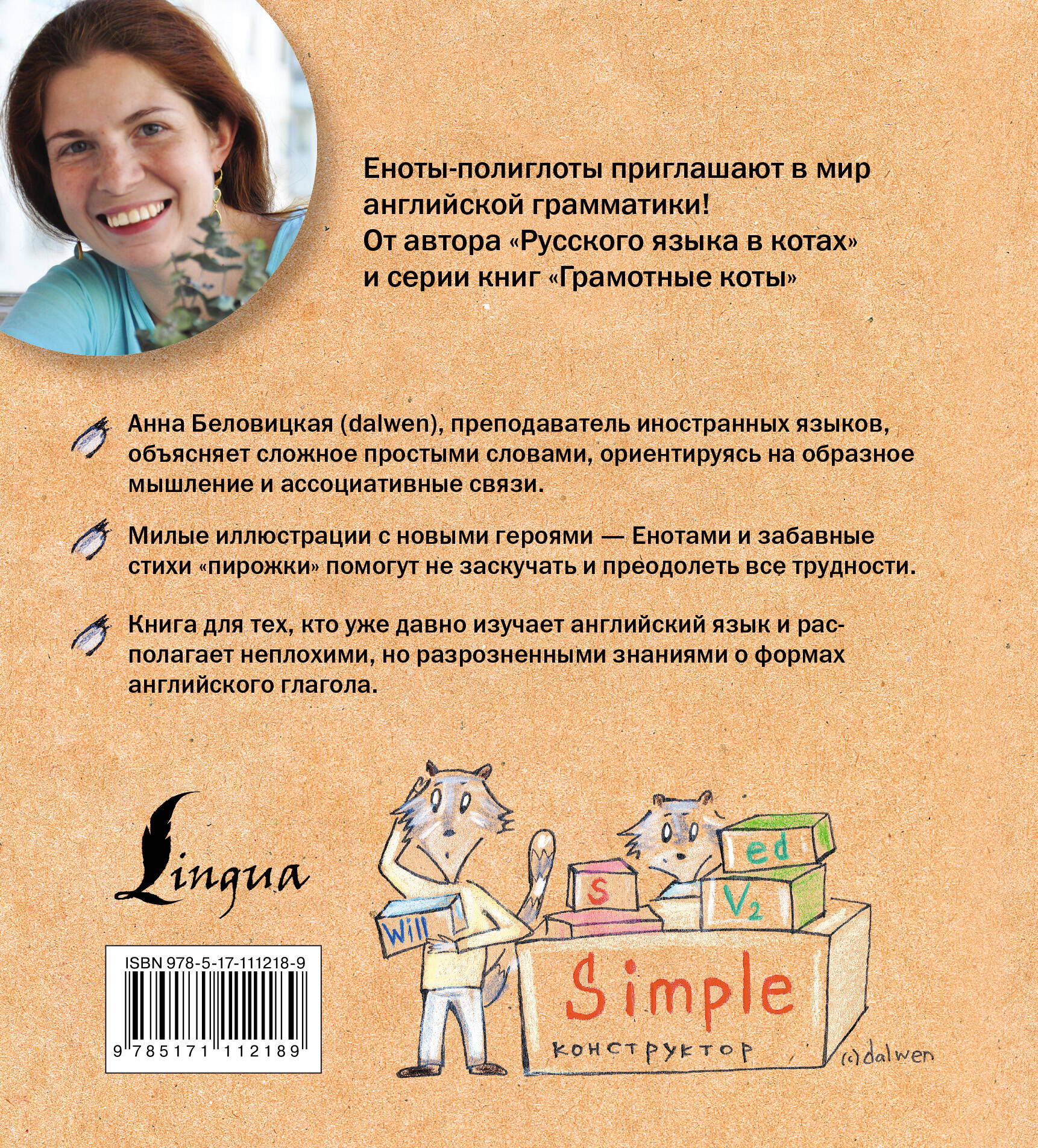 Английская грамматика - это что-то непонятное и враждебное? А вот и нет! Озорные еноты проведут вас тайными тропами в мир, где нет длинных непонятных формулировок, зато есть забавные картинки и стишки-пирожки. Подробные объяснения, весёлые примеры и тренировочные упражнения помогут вникнуть в материал, а также понять степень его усвоения. Анна Беловицкая, педагог и иллюстратор, автор серии "Грамотные коты", представляет не менее грамотных енотов, которые станут добрыми друзьями для тех, кто уже не первый год изучает английский язык и знаком с основными правилами, но не может понять логику времён, пассивный залог и другие трудности грамматики. Книга послужит прекрасным дополнением пособиям по изучению английского языка. Для учеников средней и старшей школы, а также для преподавателей и самостоятельно изучающих язык.| Издательство | Издательство "АСТ" |