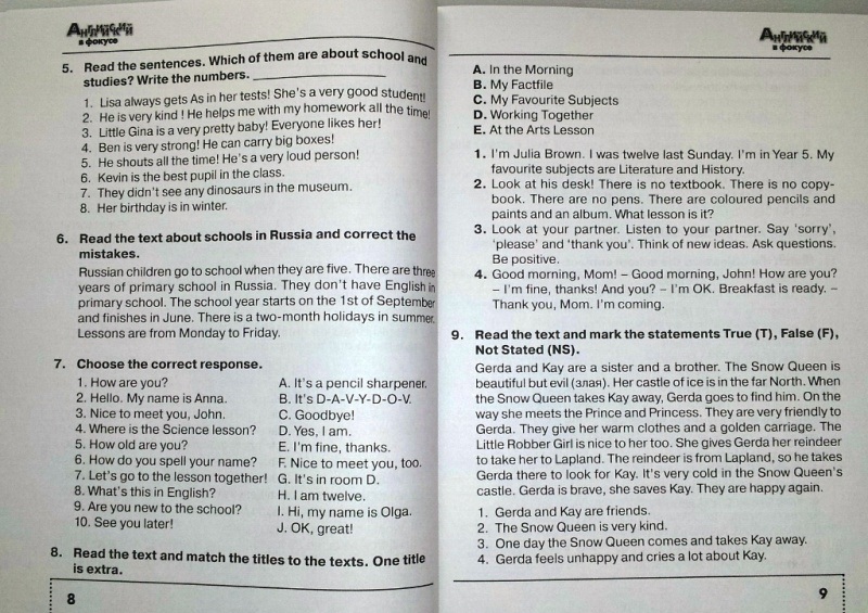 Предлагаемый сборник является дополнительным компонентом УМК серии «Английский в фокусе» для 5 класса общеобразовательных учреждений авторов Ю.Е. Ваулиной, Д. Дули, О.Е. Подоляко и др. В сборнике предлагается система заданий на развитие умений чтения, письма, лексико-грамматических навыков как основы речевых умений. Сборник не только решает задачу тренировки установленных форматов экзаменационных заданий, но и служит развитию универсальных учебных действий согласно требованию ФГОС основного общего образования. Материалы пособия можно использовать на уроках английского языка и дома самостоятельно.