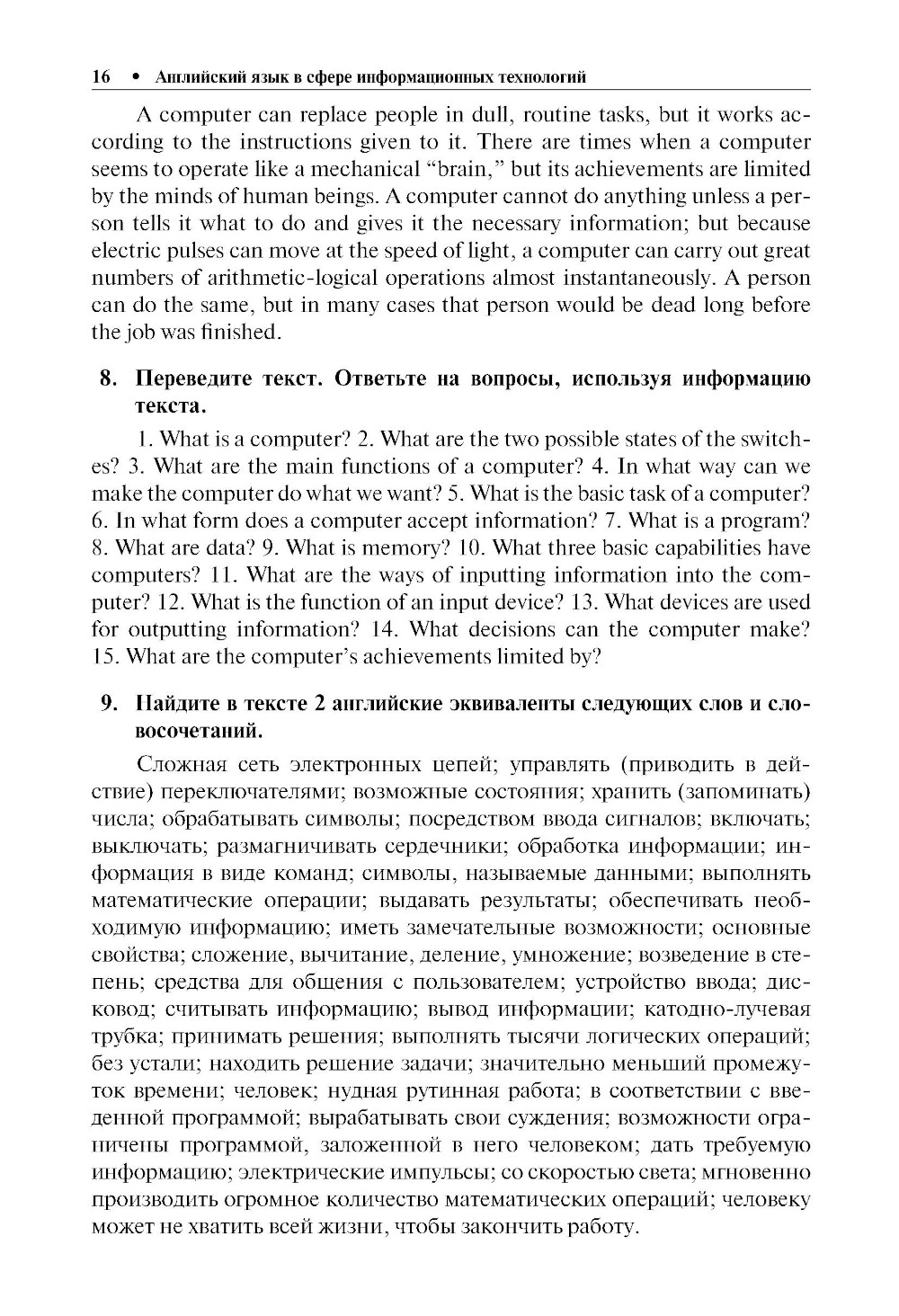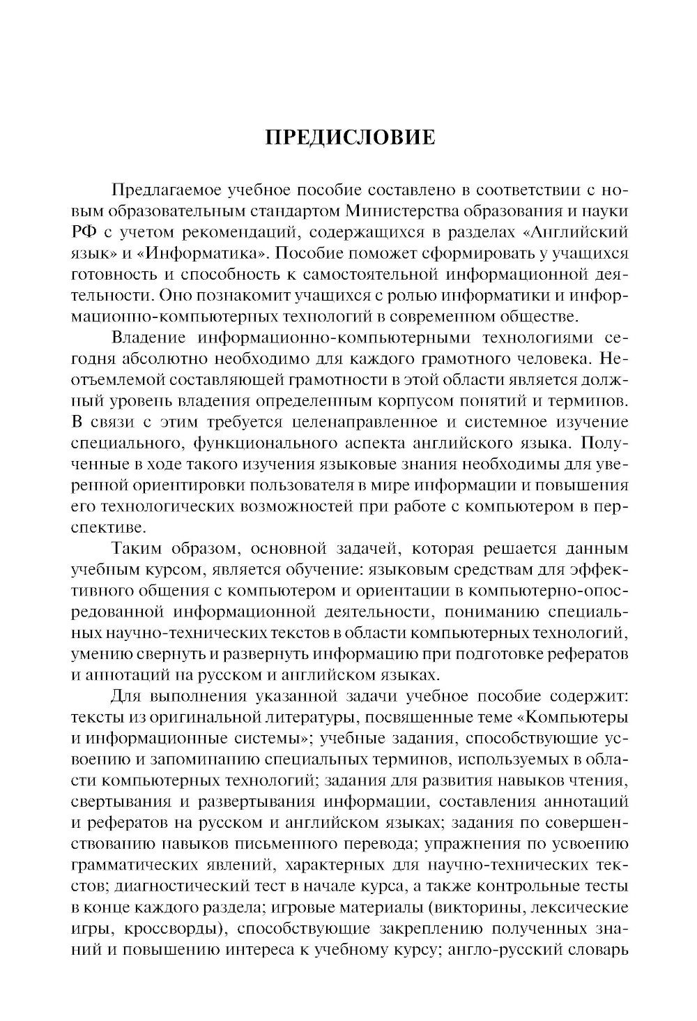 Предназначено для изучения английского языка, используемого в области информационно-компьютерных технологий (ИКТ). Дает возможность расширить и углубить свои познания в английском языке, а также овладеть осно вами компьютерной грамотности. В пособие включены тексты из оригинальной литературы, связанной с тематикой ИКТ; разнообразные учебные задания, помогающие усвоению и запоминанию необходимых специальных терминов; задания по свертыванию и развертыванию информации, составлению аннотаций и рефератов на русском и английском языках и другие учебные инструменты для формирования языковой компетенции в области ИК-технологий. Соответствует ФГОС ВО последнего поколения. Для студентов колледжей и вузов, учащихся школ и лицеев с информационно-технической специализацией, а также всех, кто интересуется английским языком в его приложении к информационно-компьютерной сфере.| Издательство | КноРус |