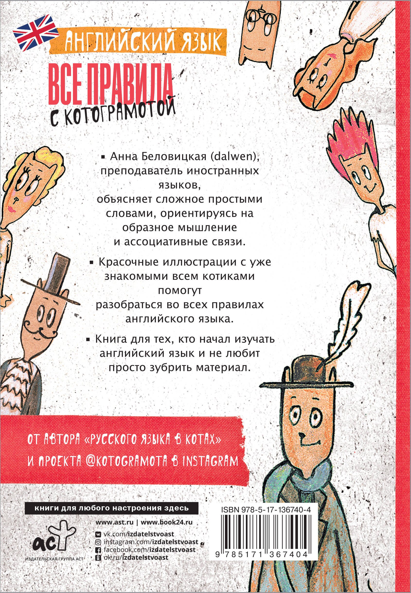 Автор популярного в Интернете "Русского языка в котах" представляет книгу "Английский язык. Все правила с котограмотой", которая моментально решит все ваши проблемы в изучении английского языка. Забудьте про зубрежку! Красочные иллюстрации с уже знакомыми и полюбившимися всем котиками помогут разобраться даже в самых сложных правилах английского языка, а также с легкостью запомнить новые слова, благодаря предложенным автором ассоциациям. Книга послужит прекрасным дополнением пособиям по изучению английского языка и подойдет для любого уровня владения языком.| Издательство | ИЗДАТЕЛЬСТВО "АСТ" |