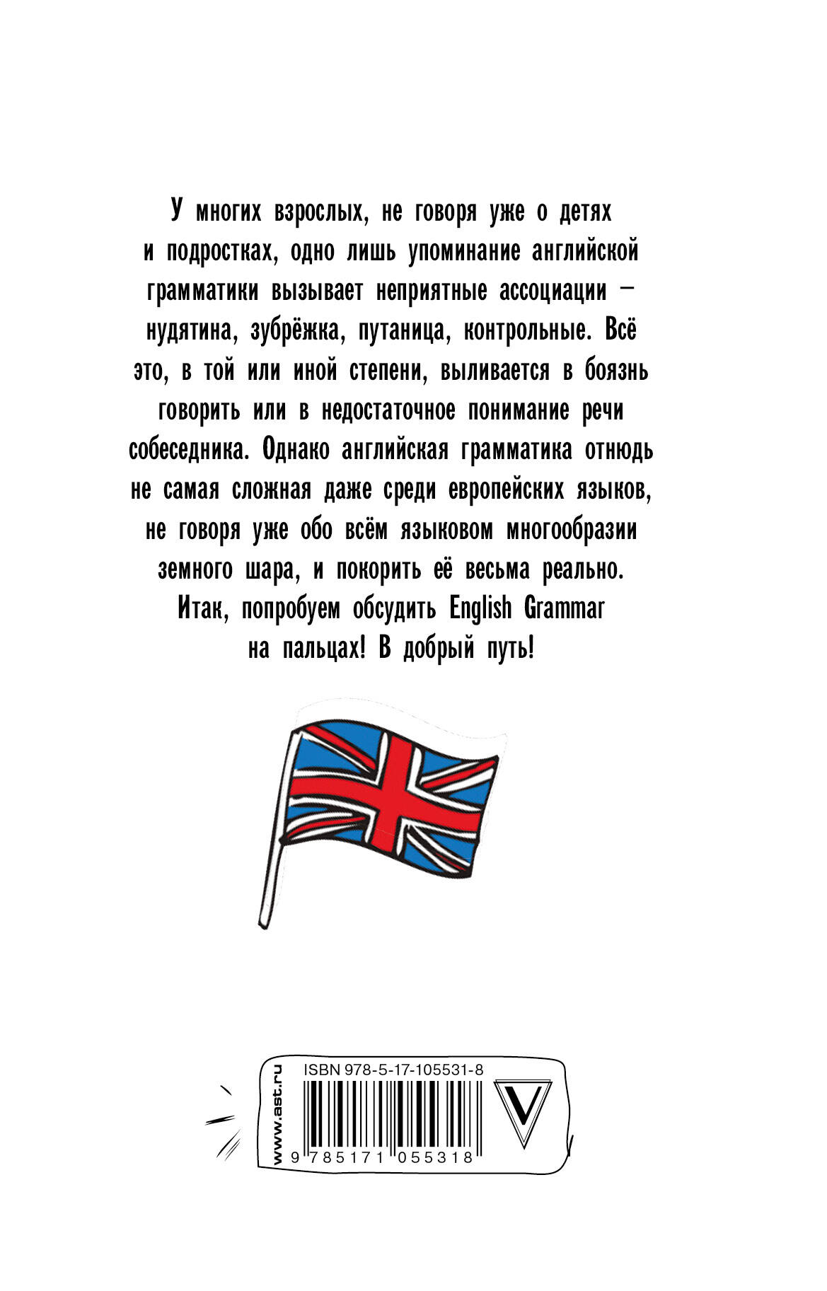 У многих взрослых, не говоря уже о детях и подростках, одно лишь упоминание английской грамматики вызывает неприятные ассоциации - нудятина, зубрёжка, путаница, контрольные. Всё это, в той или иной степени, выливается в боязнь говорить или в недостаточное понимание речи собеседника. Однако, английская грамматика отнюдь не самая сложная даже среди европейских языков, не говоря уже обо всём языковом многообразии земного шара, и покорить её весьма реально. Итак, попробуем обсудить English Grammar на пальцах!| Издательство | Издательство "АСТ" |