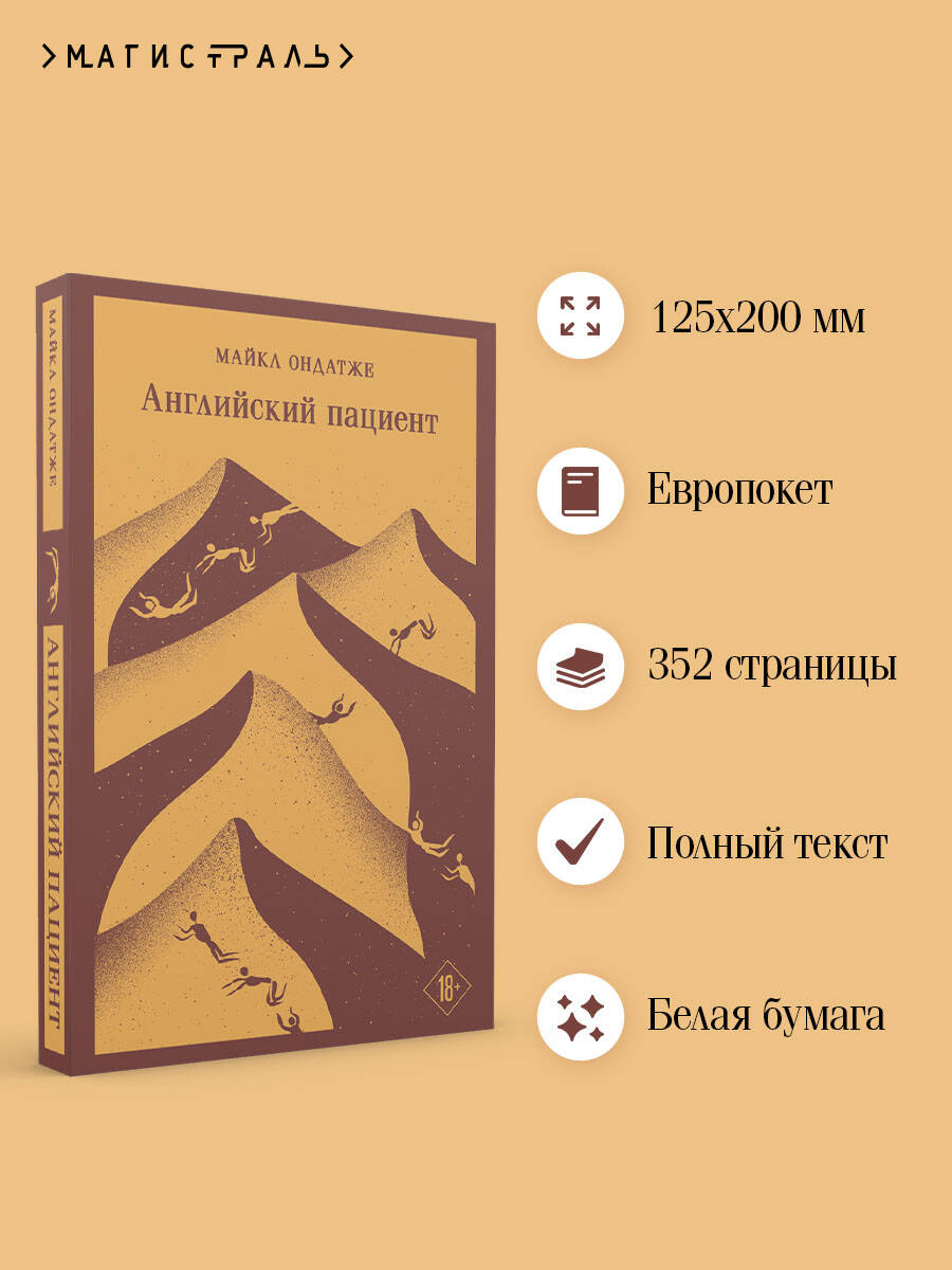«Английский пациент» - история, удостоенная главных книжных наград. Роман получил Букеровскую премию в 1992 году. В 2018 году «Английский пациент» был удостоен специальной премии «Золотой Букер», которая была приурочена к 50-летию Букеровской премии. Она присуждается по итогам голосования читателей, посчитавших эту книгу лучшим романом из букеровского списка за 50 лет. Книга была адаптирована для экранизации в 1996 году режиссером Энтони Мингеллой. Фильм получил девять «Оскаров», включая «Лучший фильм» и «Лучший режиссер». Он встретился с ней, когда она приехала с мужем в Северную Африку. Он влюбился в нее, когда она цитировала Геродота, сидя у костра в южной ночи. Он потерял ее, когда она стала всем в его жизни. Теперь от него осталось только бренное тело, лежащее на больничной койке в разрушенной итальянской вилле. Медсестра Хана добровольно ухаживает за своим «английским пациентом». Она видит в нем привычную жизнь, которую отобрала Вторая мировая война. Его состояние ухудшается, память слабеет, ускользая словно песок сквозь пальцы. Но он улыбается, ведь с каждым днем он становится все ближе к своей Кэтрин.| Издательство | ООО "Издательство "Эксмо" |
