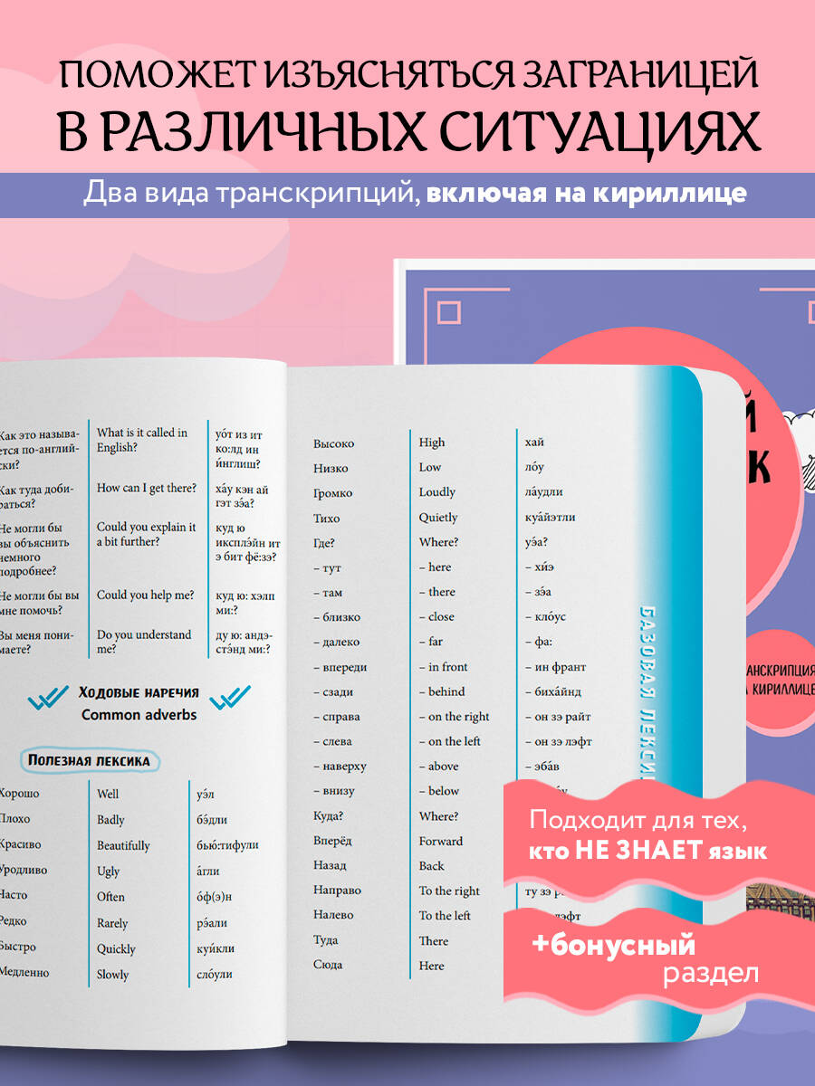Начни говорить на английском уже сейчас! Английский разговорник поможет изъясниться за границей в различных ситуациях: будь то заказ обеда в ресторане либо поход в аптеку. Разговорник включает в себя множество тем и выражений, снабжённых транскрипцией на кириллице. Небольшой формат, гибкая обложка и закруглённые уголки, - всё делает разговорник идеальным карманным помощником! Предназначен для смелых выездов за границу, а также послужит отличным пособием для самостоятельного развития разговорного языка.| Издательство | ООО "Издательство "Эксмо" |