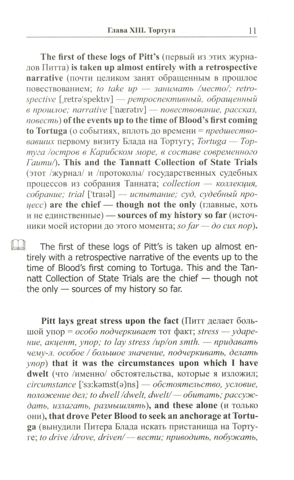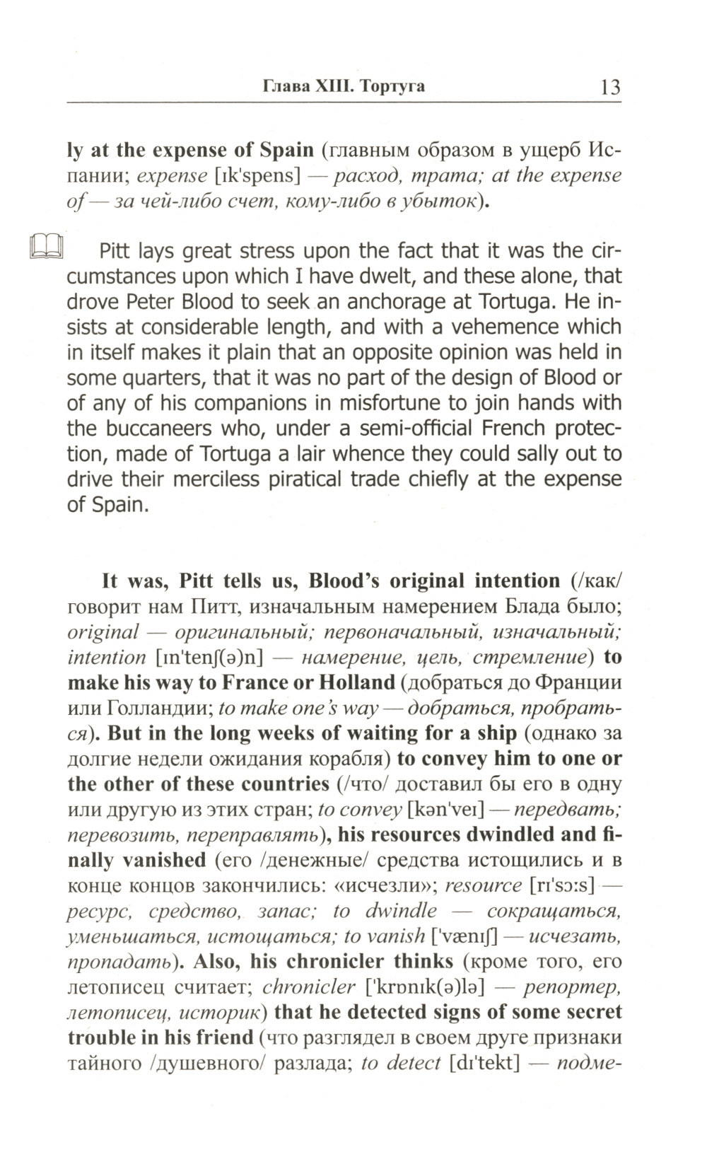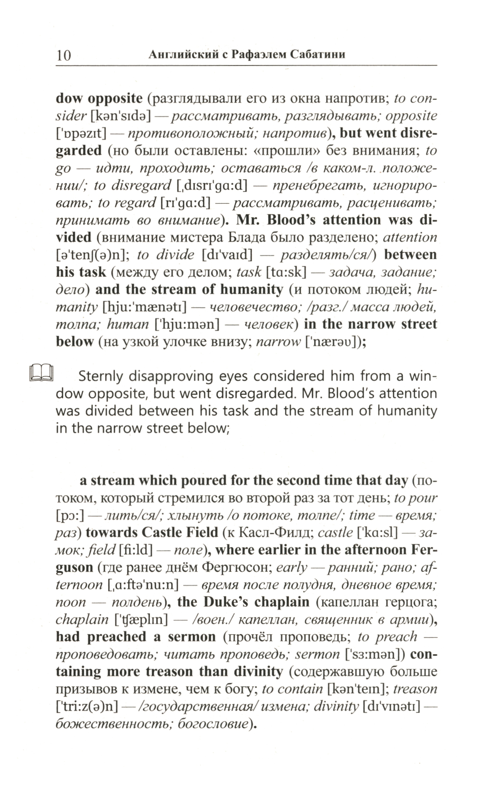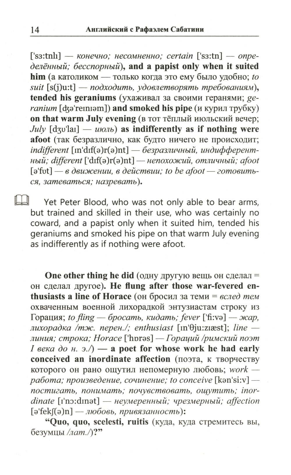 Комплект из 2 книг Рафаэля Сабатини. «Английский с Рафаэлем Сабатини. Одиссея капитана Блада. Начало приключений»: «Одиссея капитана Блада», без сомнения, входит в число лучших приключенческих романов, написанных за всю историю мировой литературы. Повествование о благородном смельчаке, волею судьбы оказавшемся во главе команды пиратов, уже много лет покоряет читателей увлекательным сюжетом и безупречностью в описании исторических реалий. В книгу вошли первые двенадцать глав романа, в которых доктор Питер Блад успевает проделать головокружительный путь от уютной комнаты в особняке на юге Англии до капитанского мостика на захваченном испанском корабле, держащем путь «в царство свободы» на острове Тортуга. Произведение адаптировано по методу Ильи Франка: снабжено дословным переводом на русский язык и необходимым лексико-грамматическим комментарием (без упрощения текста оригинала). Уникальность метода заключается в том, что запоминание слов и выражений происходит за счет их повторяемости, без заучивания и необходимости использовать словарь. Кроме того, читатель привыкает к логике английского языка, начинает его «чувствовать». «Английский с Рафаэлем Сабатини. Одиссея капитана Блада. Вор и пират»: Вторая часть «Одиссеи» повествует о блестящих победах, превративших капитана Блада в одного из самых уважаемых командиров «берегового братства». Однако радость этих побед не может пересилить горечь осознания огромной и непреодолимой пропасти, отделяющей нашего героя от любви всей его жизни... Очередные семь глав романа - с тринадцатой по девятнадцатую - адаптированы в настоящем издании по методу Ильи Франка: снабжены дословным переводом на русский язык и необходимым лексико-грамматическим комментарием (без упрощения текста оригинала). Запоминание слов и выражений при этом происходит за счет их повторяемости, без заучивания и необходимости использовать словарь. Кроме того, читатель привыкает к логике английского языка, начинает его «чувствовать».| Издательство | Восточная книга |