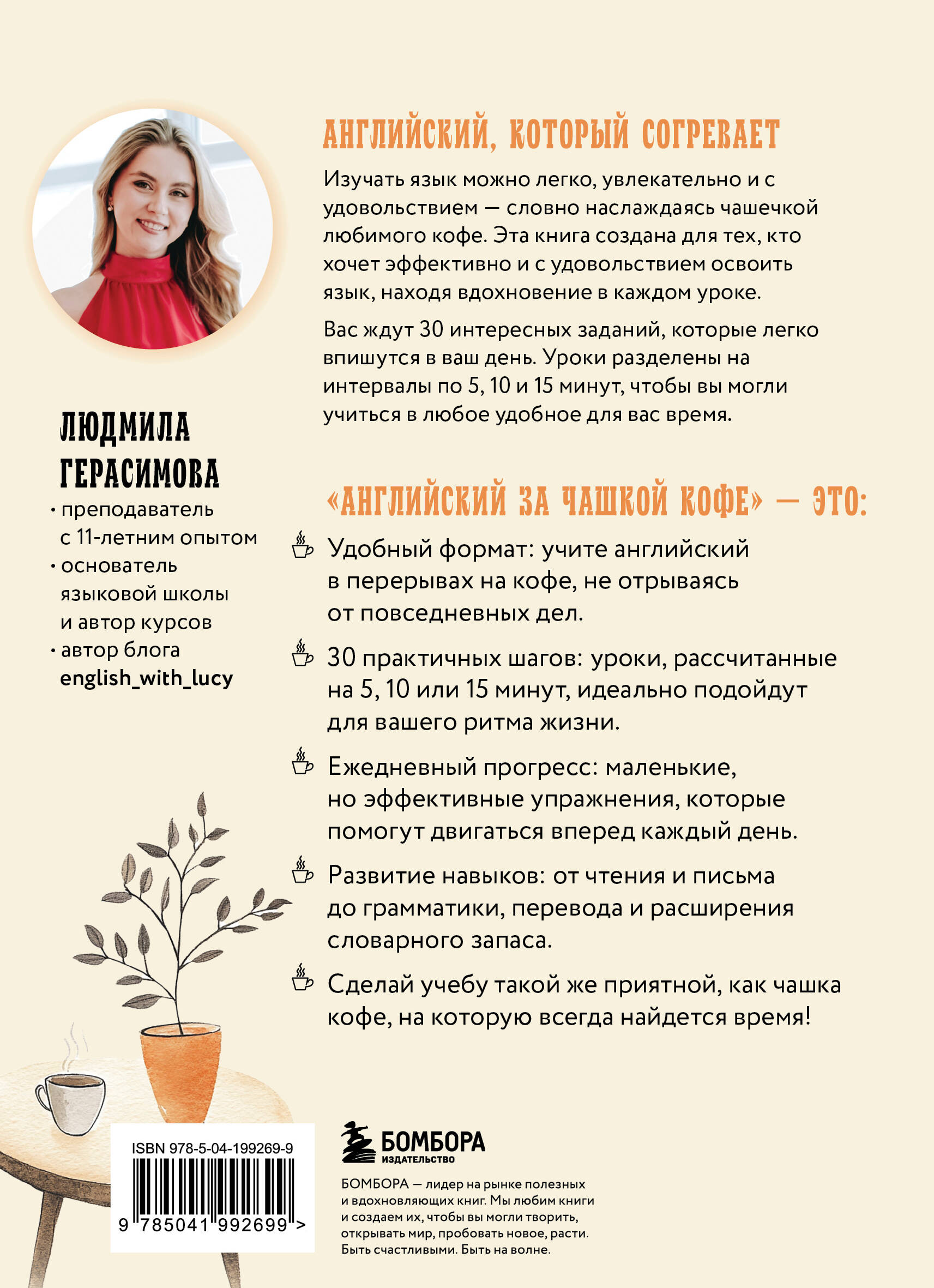 Учите английский легко - так же, как наслаждаетесь чашечкой кофе! «Английский за чашкой кофе» - это 30 коротких и эффективных уроков, которые помогут вам: - расширить словарный запас; - освоить грамматику без зубрежки; - развить навыки чтения, письма и перевода; - включить английский в повседневную жизнь. Практичный английский для реальных ситуаций! Вы научитесь понимать статьи и фильмы, а также естественно выражаться в путешествиях и в неформальном общении. Только актуальная лексика и живые примеры, которые действительно пригодятся! Занимайтесь всего 5, 10 или 15 минут в день в удобное время и с комфортным ритмом - без перегрузки и стресса. Автор книги - Людмила Герасимова, преподаватель с 11-летним опытом, основатель языковой школы и популярного блога english_with_lucy. Ее методика доказала: учить английский можно легко, увлекательно и эффективно!| Издательство | ООО "Издательство "Эксмо" |