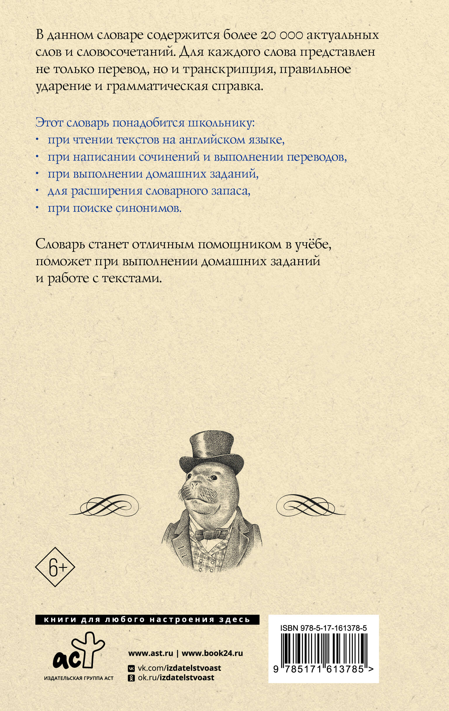 Словарь содержит более 20 000 актуальных слов и словосочетаний. Представленная лексика соответствует школьной программе 5-9 классов. Словарь состоит из двух частей: англо-русской и русско-английской. Для каждого слова даётся не только перевод, но и фонетическая транскрипция, правильное ударение и грамматическая справка. Этот словарь станет отличным помощником в учёбе, поможет при выполнении домашних заданий и работе с текстами.| Издательство | Издательство "АСТ" |