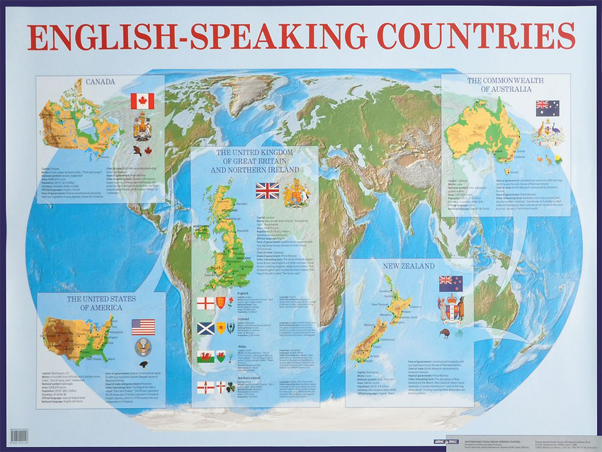 Плакат является самостоятельной частью комплекта наглядных пособий и демонстрационных материалов по страноведению (английский язык). На нем представлены географическое положение и основная информация страноведческого характера об англоязычных странах (Великобритания, США, Канада, Австралия, Новая Зеландия). Также приводятся данные об Англии, Шотландии, Уэльсе и Северной Ирландии. Пособие предназначено для занятий на среднем и старшем этапе обучения английскому языку. Плакат реализует Государственный образовательный стандарт и может использоваться по всем программам обучения английскому языку, утвержденным Министерством образования РФ.
