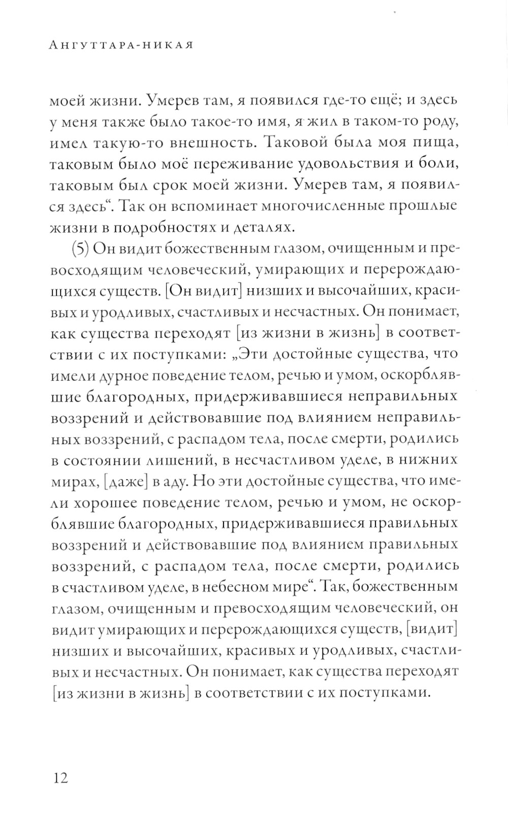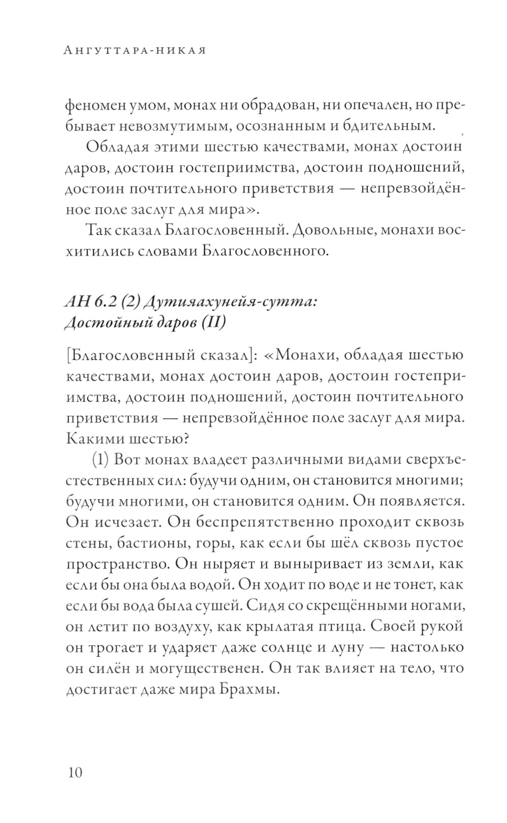 Ангуттара-никая, или «Номерные наставления Будды», - это четвёртое из четырёх больших собраний Сутта-питаки Палийского канона. Она состоит из 11 нипат, или книг, которые в общей сложности содержат почти десять тысяч коротких сутт. Большая часть из них, однако, является повторами с незначительными изменениями, поэтому уникальных текстов насчитывается порядка четырёх тысяч. В основе Ангуттара-никаи лежит номерная схема, в которой сутты, содержащие определённое количество рассматриваемых пунктов, включены в соответствующую этому числу книгу. Это способствовало более лёгкому запоминанию и освоению материала в древние века, когда письменность только начинала зарождаться, а все учения передавались в устной форме. В данном издании АН разделена на четыре тома. Третий том содержит Книгу Шести, Книгу Семи и Книгу Восьми. Тематика сутт охватывает самые разные аспекты буддийского учения.| Издательство | Изд. Ганга |