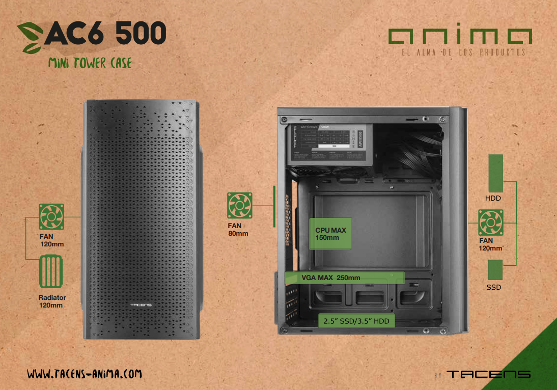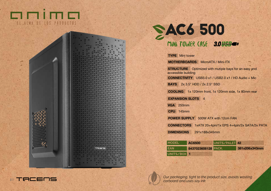 Anima AC6 500 Mini-Tower Компьютерный корпус mATX / 500W / Чёрный
