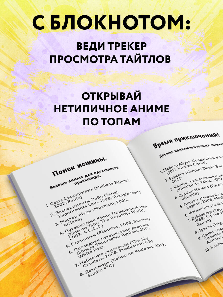 Настало время завернуться в плед у экрана и открыть удобный блокнот для любителей аниме! Прими вызов, достойный настоящего хикикомори - посмотри все лучшие аниме, рекомендованные профессиональной студией озвучки Reanimedia! Отмечай галочками уже просмотренное и открывай для себя новые аниме-сериалы. Внутри ты найдешь Топ-100 аниме всех жанров и трекер просмотра серий, который позволит тебе не потеряться в количестве серий, даже если ты смотришь разу два сериала одновременно! Проведи выходные вместе со студией, озвучившей фильмы Миядзаки и одни из самых известных аниме - «Волчица и пряности», «Евангелион», «Меланхолию» Харухи Судзумии и другие! Блокнот выходит в двух оформлениях, одно из которых подготовила Hemomolin - художница-профессионал, рисующая в собственной стилистике. Запасайся любимой едой, теплым одеялом и выбирай, с чего начать вечер!| Издательство | ООО "Издательство "Эксмо" |