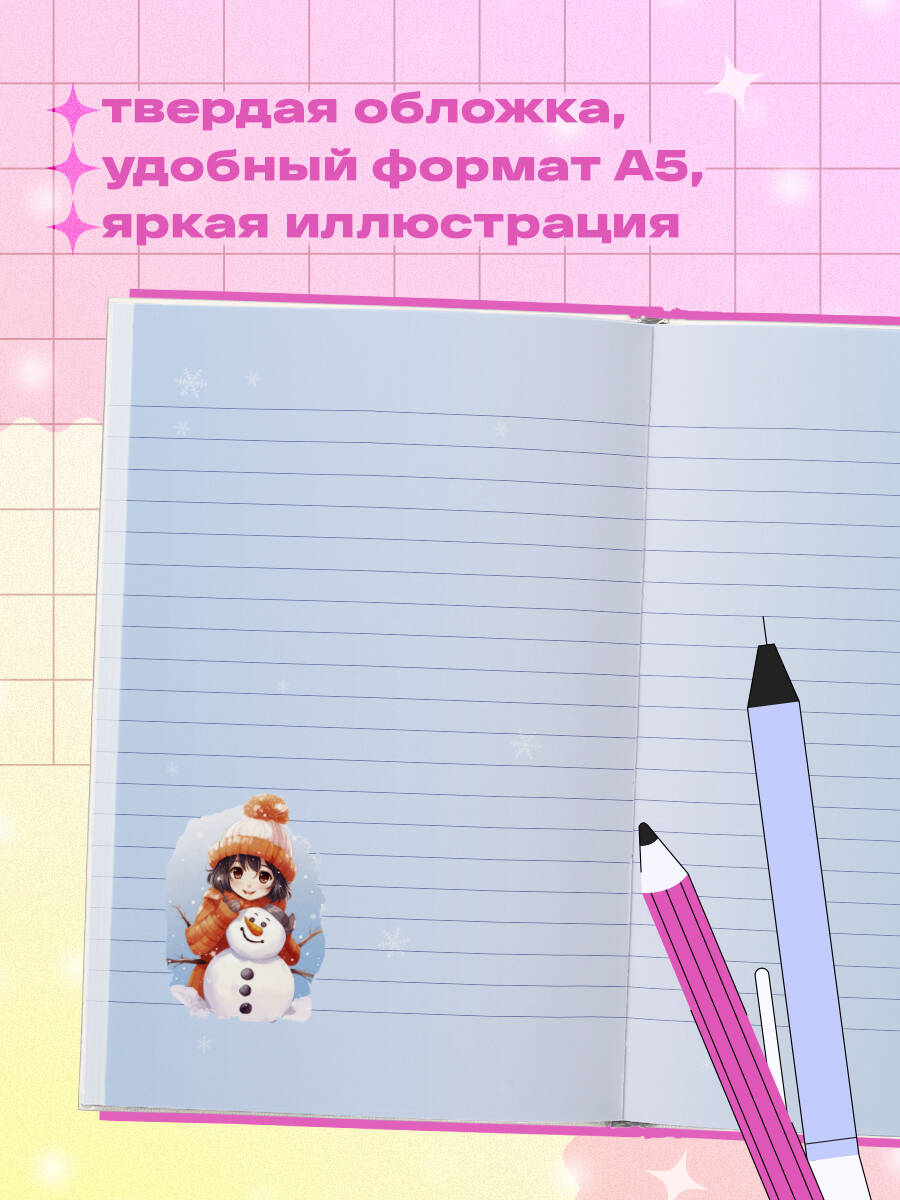 Аниме. Новогодний блокнот А5, 64 л., цветной блок, белый
