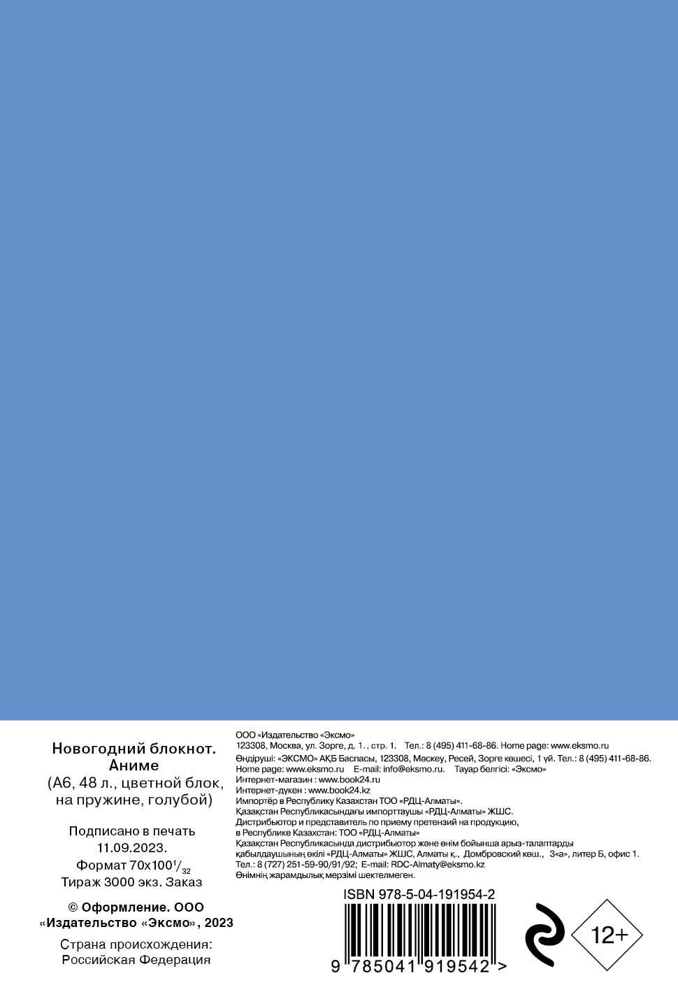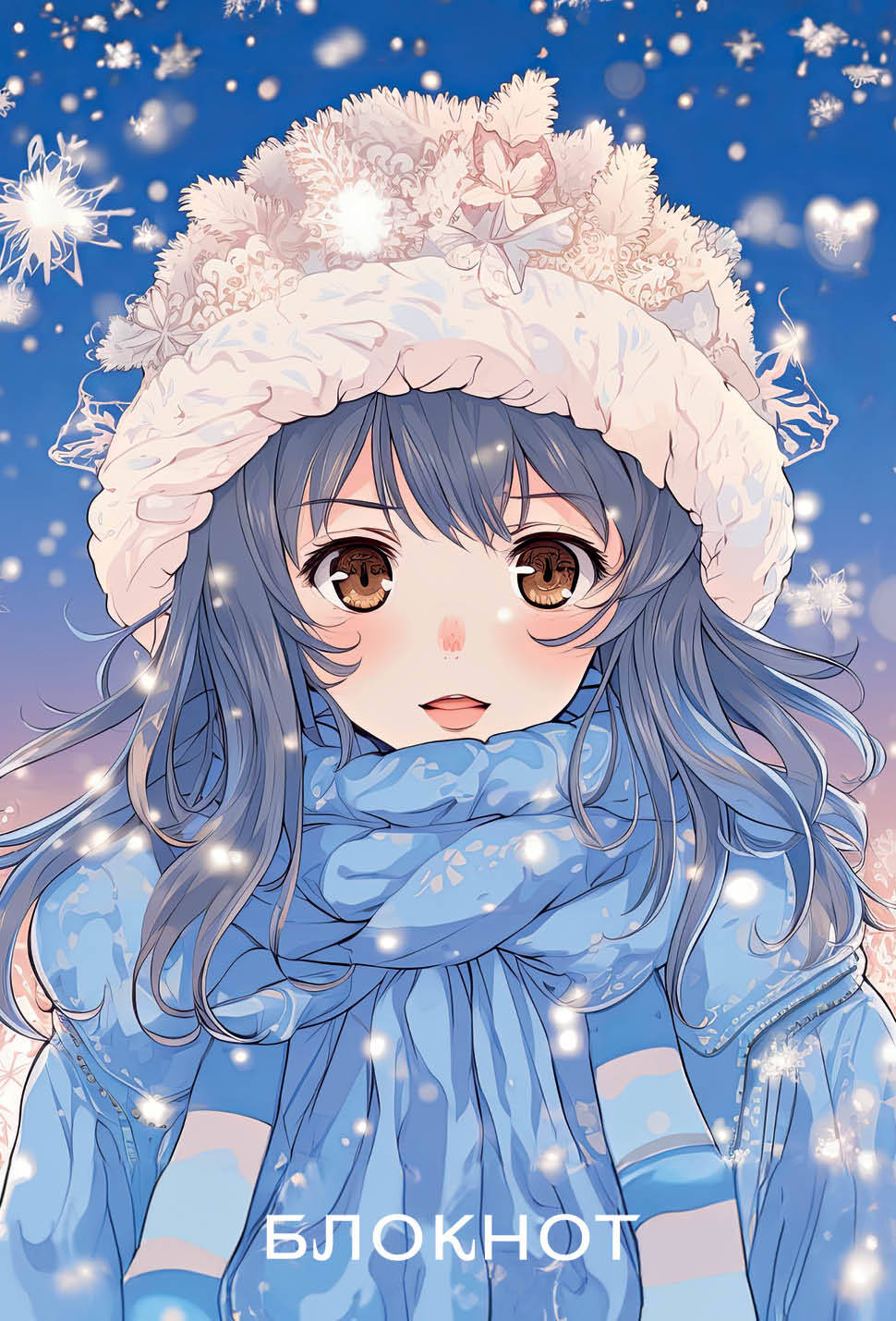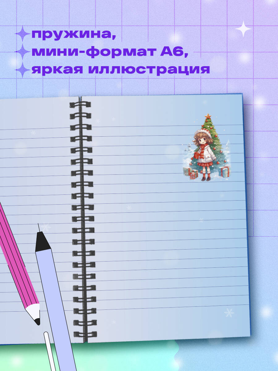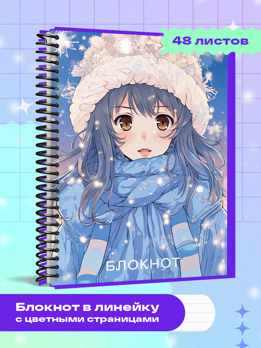 Аннотация: Аниме. Новогодний блокнот (А6, 48 л., цветной блок, на пружине, голубой)