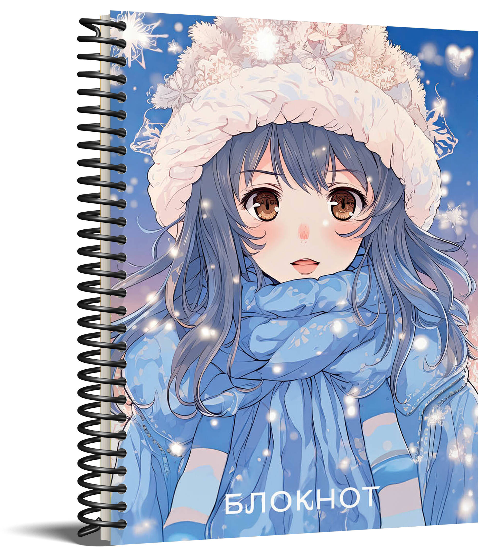 Аниме. Новогодний блокнот (А6, 48 л., цветной блок, на пружине, голубой)