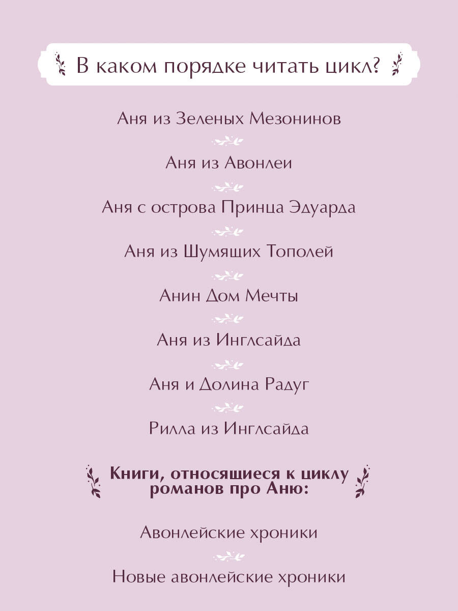 У Ани начинается новая глава в жизни, ей исполнилось 16 лет, она полна надежд и планов на будущее; другого и не стоило ожидать от нашей мечтательной знакомой. Аня собирается работать учительницей, организовывает общество по благоустройству деревни, в их доме появляются маленькие близнецы, правда и печальные события будут происходить. Спустя несколько лет после прибытия на остров она обрела много друзей, заслужила любовь и уважение жителей Авонлеи, но противостояния застарелым устоям общества, традиционному представлению, как должна вести себя молодая женщина, всё равно не избежать. Классическая история взросления со взлётами и падениями, печалями и радостями, продолжение романа «Аня из Зелёных Мезонинов».| Издательство | ООО "Издательство "Эксмо" |