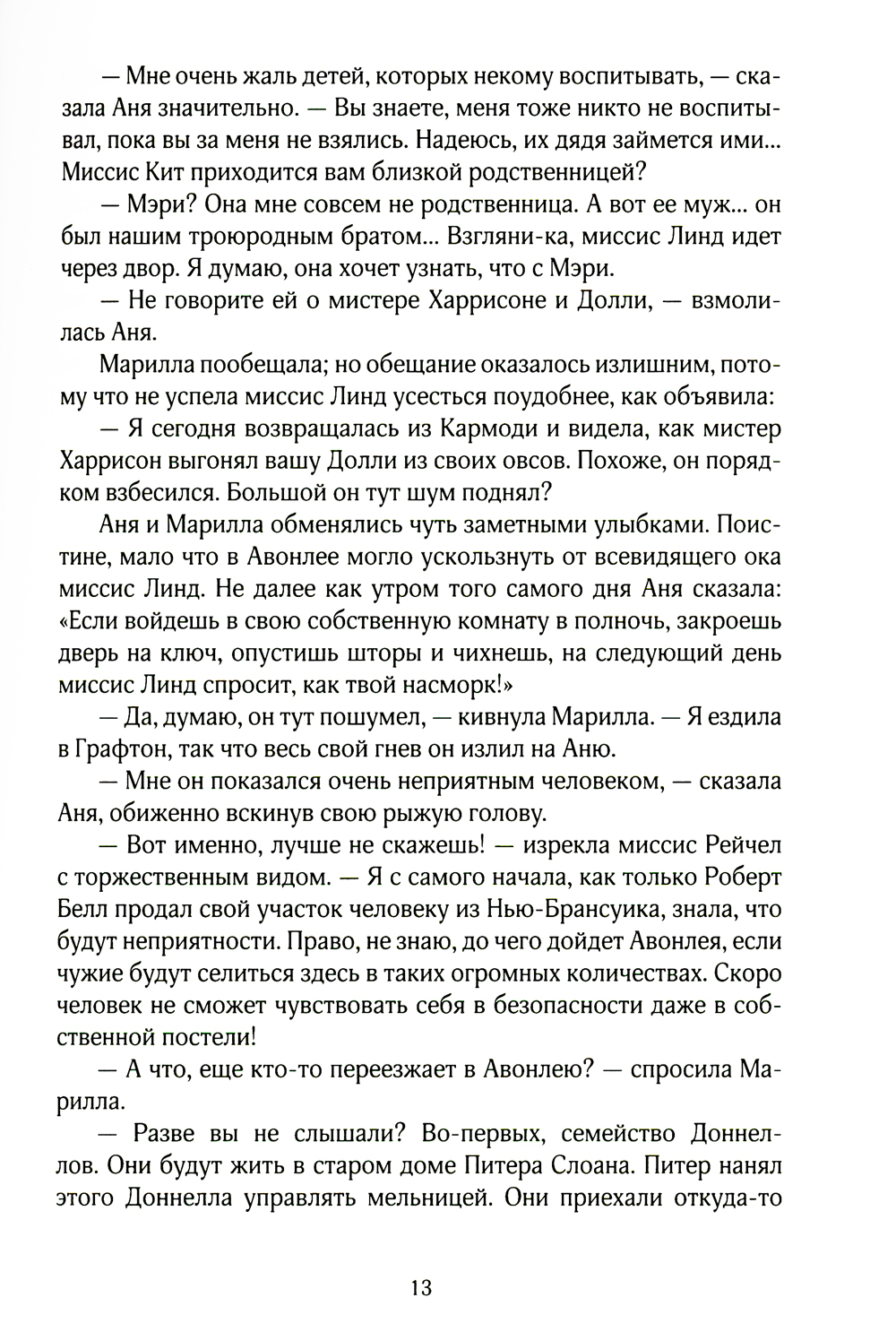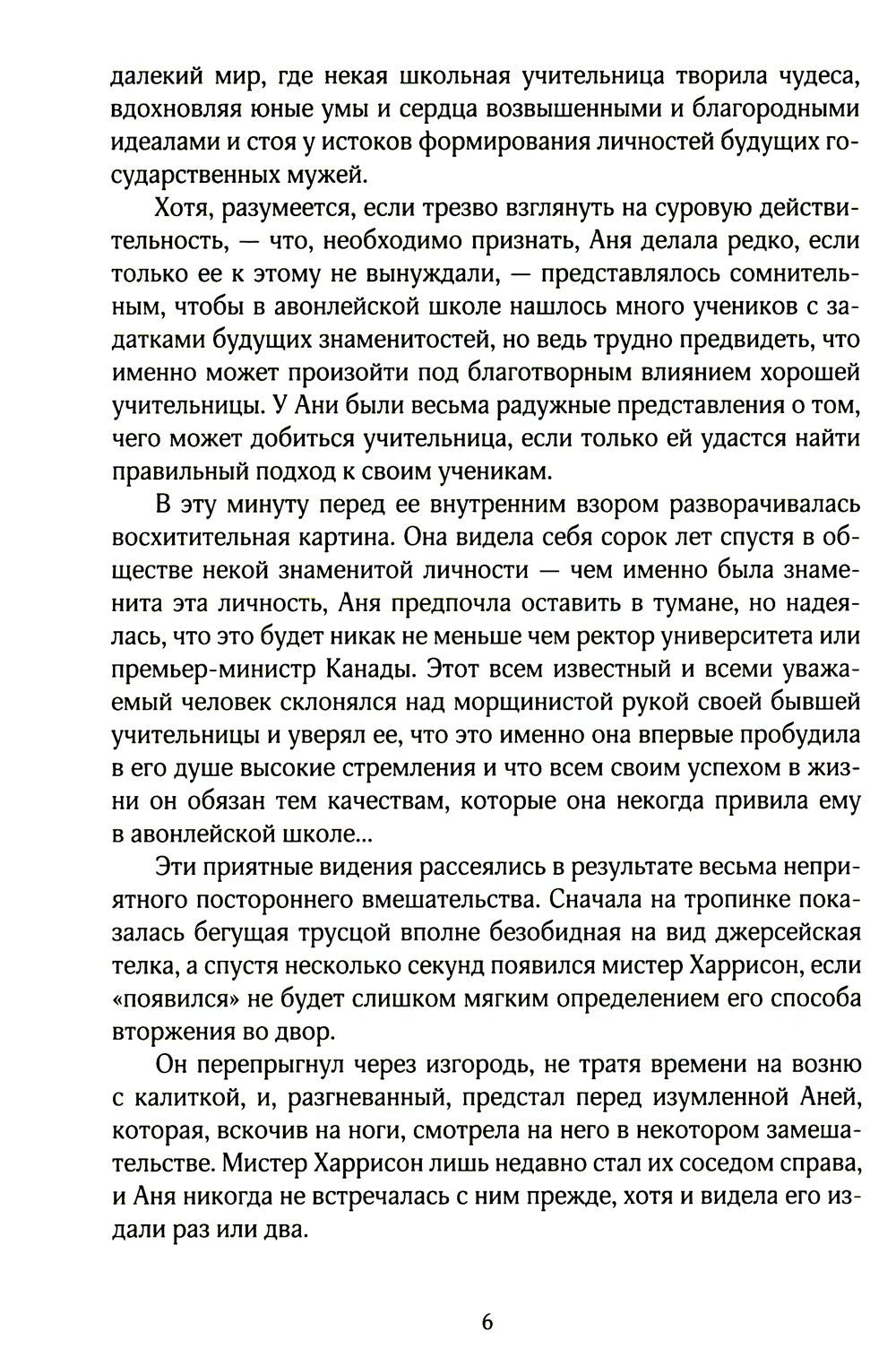 Продолжение истории об Ане Ширли из книги «Аня с фермы Зеленые Крыши». Ане шестнадцать. Теперь она работает учительницей в своей же школе и узнает: не все дети добры и горят желанием слушать юную преподавательницу. В доме Мариллы и Ани поселяются близнецы: непоседливый и неугомонный Дэвид и послушная, милая Дора, которые должны были пожить здесь временно, но, похоже, останутся насовсем. А еще Аня знакомится с маленьким Полом Ирвингом, в котором встречает родственную душу, и непременно должна ей помочь. Как мы видим, у Ани Ширли много дел, управляясь с ними, она смеется и плачет, творит добрые дела, делает ошибки и исправляет их - Аня взрослеет. Книга подарит встречу с полюбившейся героиней и познакомит с новыми героями. Иллюстрации Ольги Брезинской органично и естественно изменяют образ Ани с задорной девочки на изящную девушку и очень точно иллюстрируют историю о том, из чего складывается обыкновенная чудесная человеческая жизнь. Для детей среднего и старшего школьного возраста.