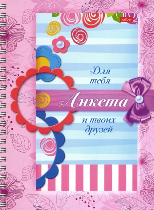 Анкета для девочек с наклейками. Бумага: тонированный офсет. Твердый переплет. Крепление: пружина. Сделано в России.