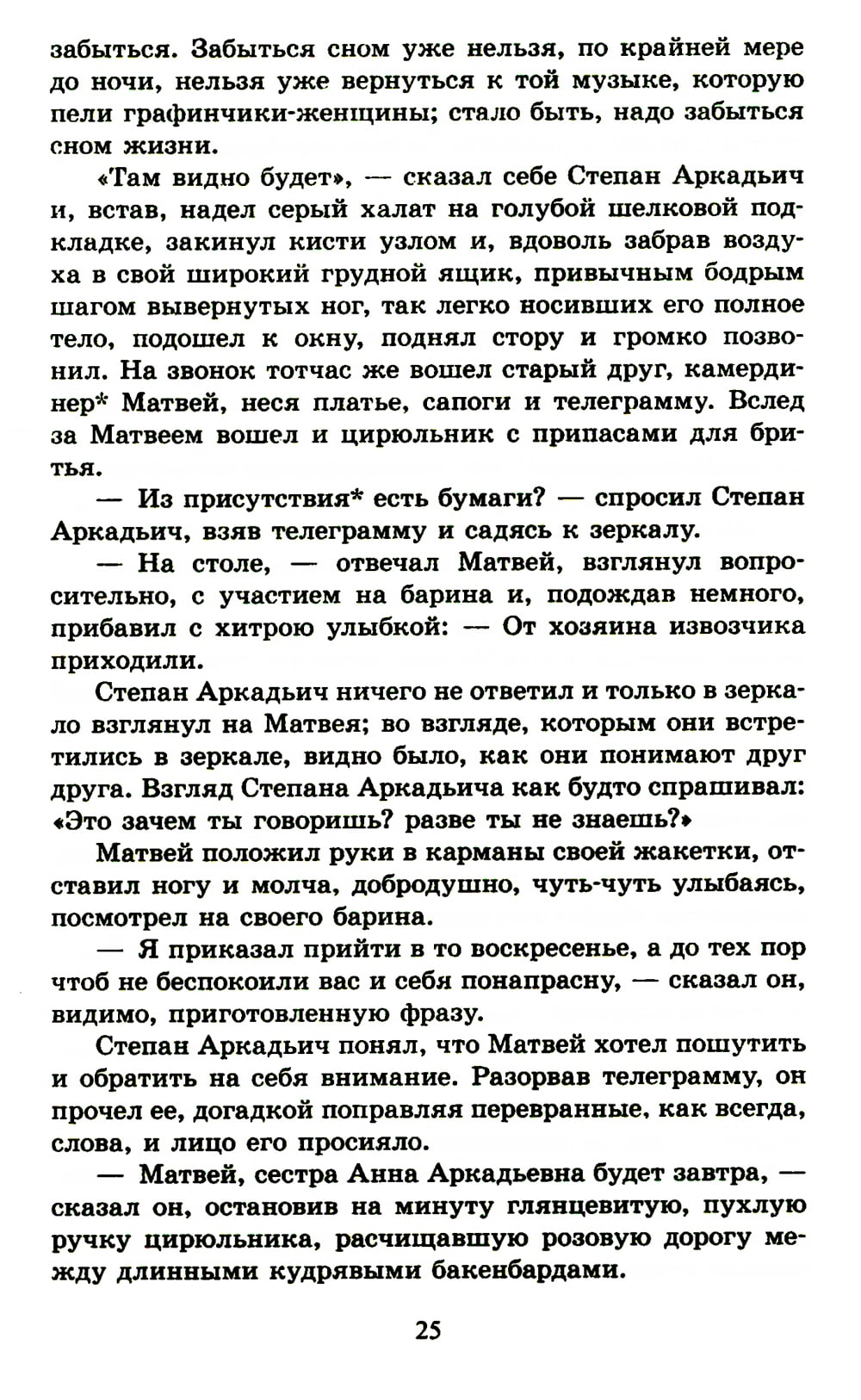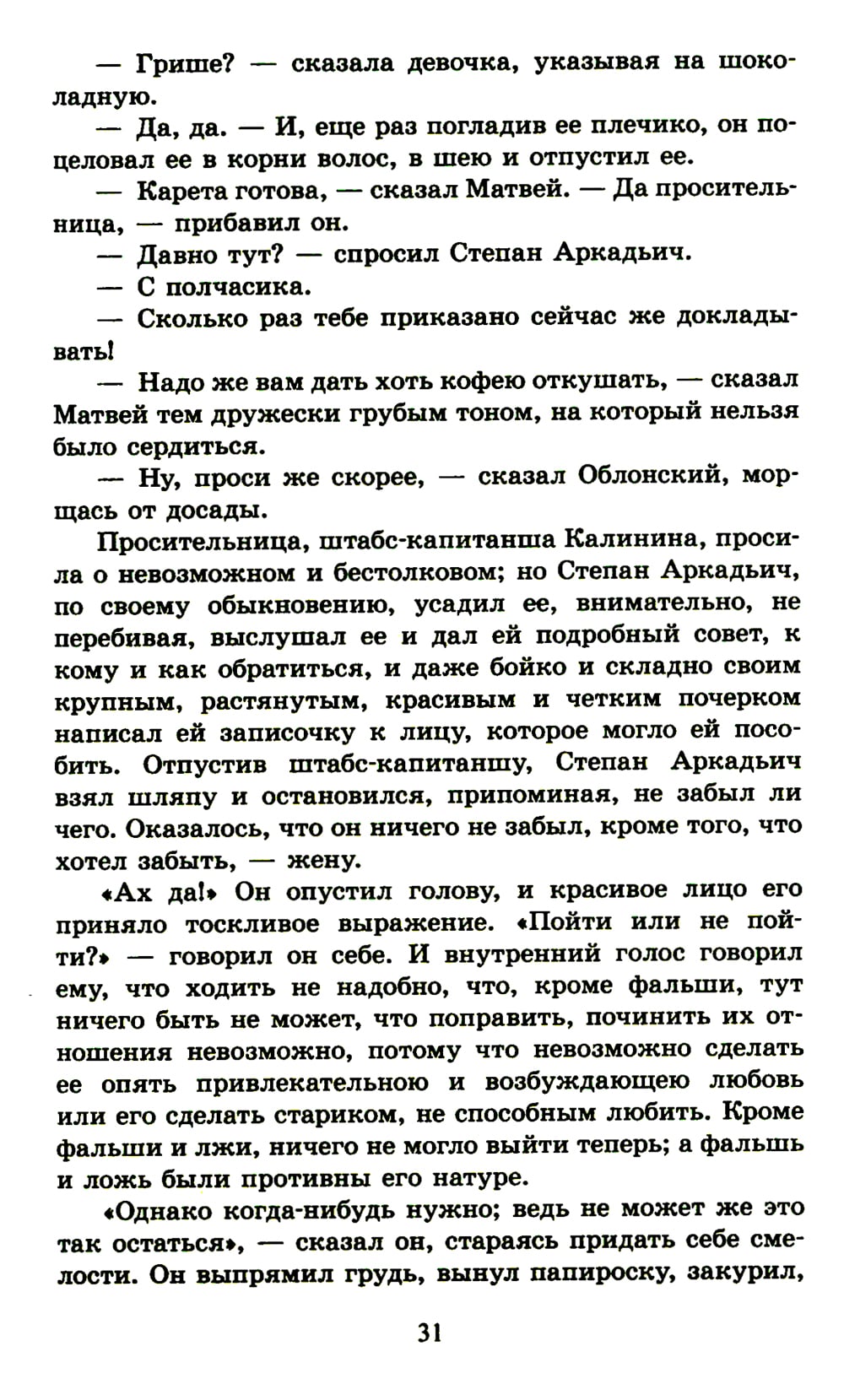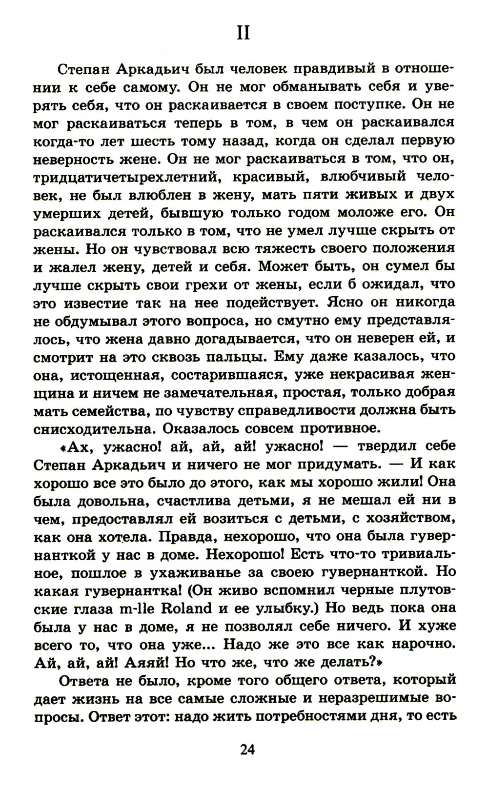 Роман Льва Николаевича Толстого (1828-1910) «Анна Каренина» - самая читаемая книга в мире. В ней со всеми подробностями показана российская действительность 1870-х годов: быт столиц и трудовая Россия; высшее общество и крестьянские дворы; устройство государства и законы того времени; науки и философия и многое другое. Это энциклопедия характеров и переживаний, это энциклопедический атлас психологии и мыслей. Это энциклопедия как в большом, так и в малом: тонкие движения души человеческой, самые мелкие детали - все поражает своей точностью. Это книга о вечных ценностях: о любви и прощении, о семье и вере. О смысле жизни. История замужней женщины, полюбившей молодого офицера и бросившей ради него мужа, была многократно экранизирована в России и за рубежом и до сих пор ставится на театральных сценах. В издание вошли части первая - четвертая романа. Для старшего школьного возраста.| Издательство | Детская и юношеская книга |
