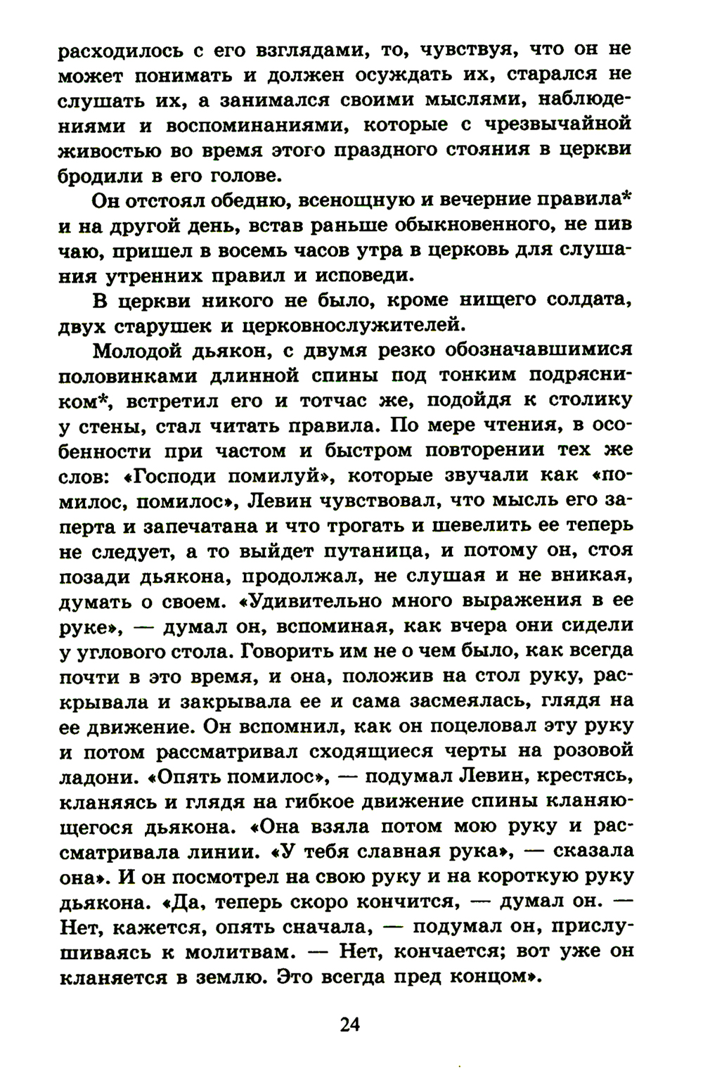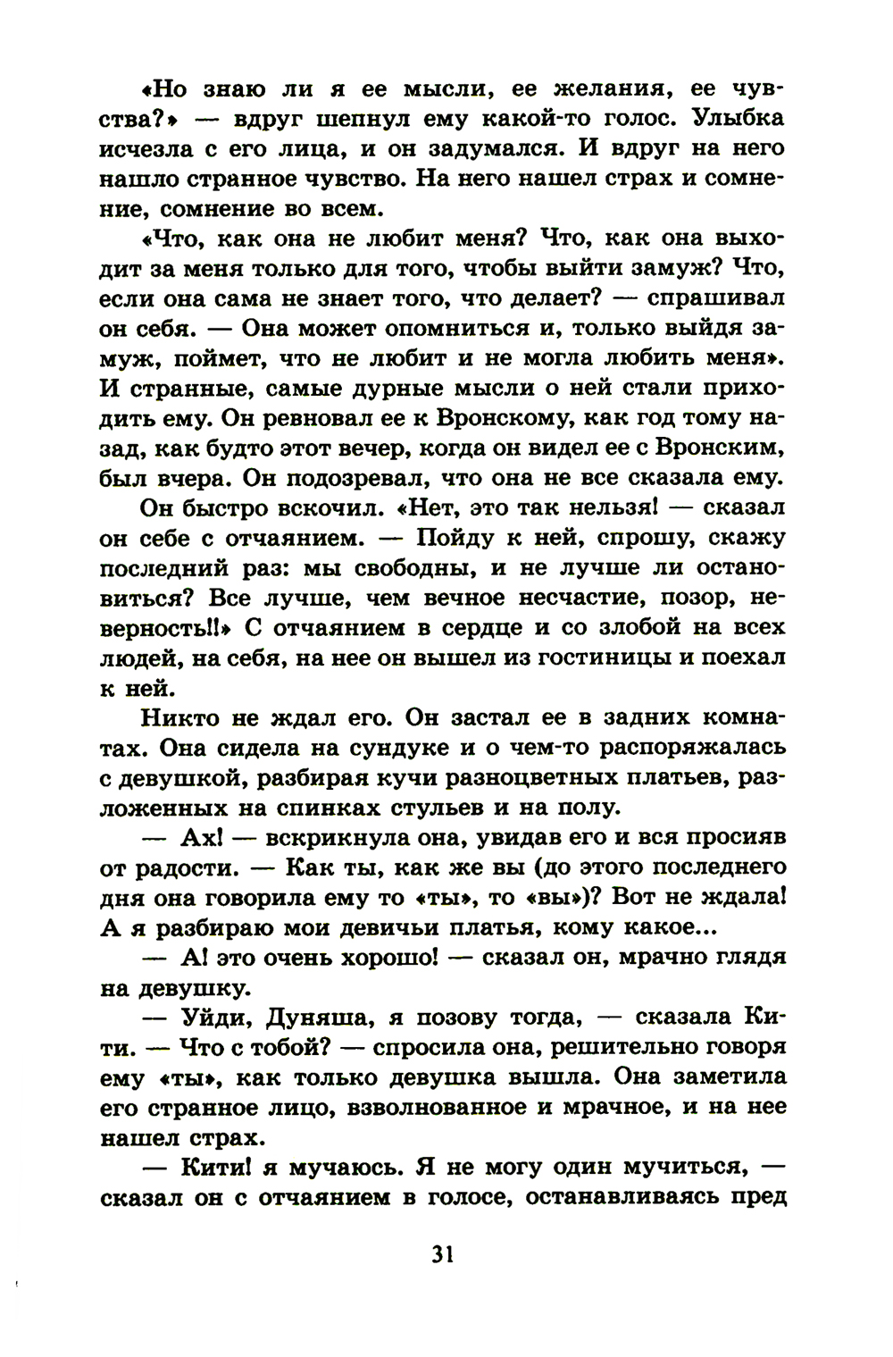 Роман Льва Николаевича Толстого (1828-1910) «Анна Каренина» - самая читаемая книга в мире. В ней со всеми подробностями показана российская действительность 1870-х годов: быт столиц и трудовая Россия; высшее общество и крестьянские дворы; устройство государства и законы того времени; науки и философия и многое другое. Это энциклопедия характеров и переживаний, это энциклопедический атлас психологии и мыслей. Это энциклопедия как в большом, так и в малом: тонкие движения души человеческой, самые мелкие детали - все поражает своей точностью. Это книга о вечных ценностях: о любви и прощении, о семье и вере. О смысле жизни. История замужней женщины, полюбившей молодого офицера и бросившей ради него мужа, была многократно экранизирована в России и за рубежом и до сих пор ставится на театральных сценах. В издание вошли части пятая - восьмая романа. Для старшего школьного возраста.| Издательство | Детская и юношеская книга |