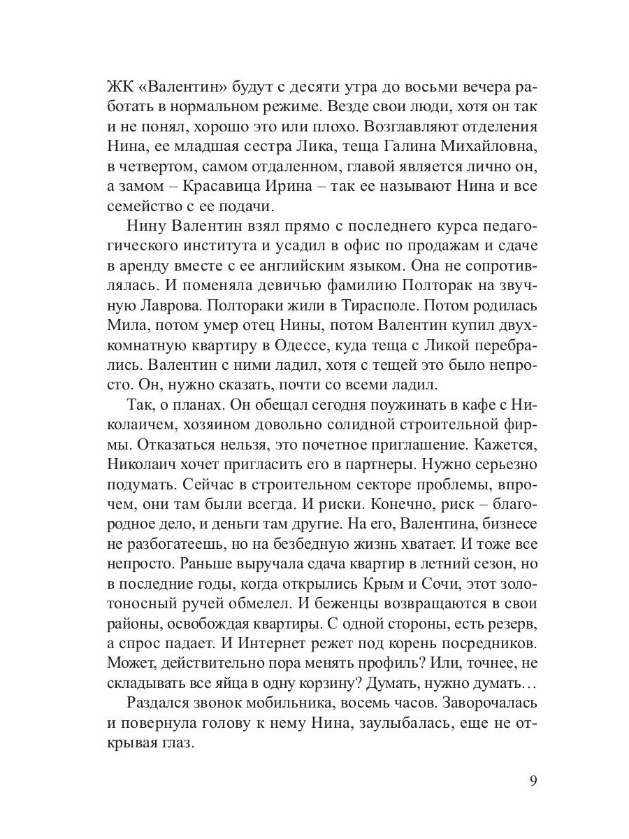 Одесса, 2040 год. Украина вырвалась из затяжного кризиса, вернула территории, и наступил мир. Страна наконец смогла использовать свой богатый потенциал и вошла в число успешных и процветающих европейских государств. Но и проблем по-прежнему хватает, какая-то чересполосица сегодняшнего, завтрашнего и позапозавчерашнего. Родимые пятна социализма далеко не отпускают. В основе сюжета романа - два месяца из жизни героев, Валентина Лаврова и Александра Гулько. Школьные приятели, тридцатипятилетние, вполне состоявшие люди, попали в водоворот неожиданных и порой необъяснимых событий. Эти события во многом изменили их жизнь и снова - в который раз! - доказали, что мы еще многого о человеке, его способностях и возможностях не знаем.| Издательство | Т8 RUGRAM |