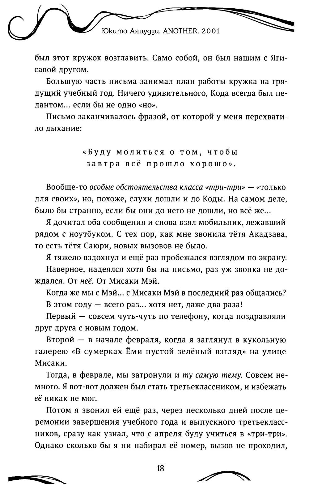 «Кто иной в этом году?» В 1998 году бедствие унесло множество жизней. С тех пор минуло три года, и весной в числе учеников класса «три-три» Северной средней школы Ёмиямы оказался Со - мальчик, с которым три года назад повстречалась Мэй. Со и весь его класс подготовили план на случай феномена, когда в класс проникает мертвец, но всё почему-то развалилось. Перед нами развернётся настоящая трагедия - бесконечно нарастающий ужас перед чередой нелепых смертей и всё более запутанные загадки. Сумеют ли Мэй и Со противостоять самой чудовищной череде бедствий в истории феномена Ёмиямы? Книга содержит два оригинальных тома романа.| Издательство | ИД Истари Комикс |