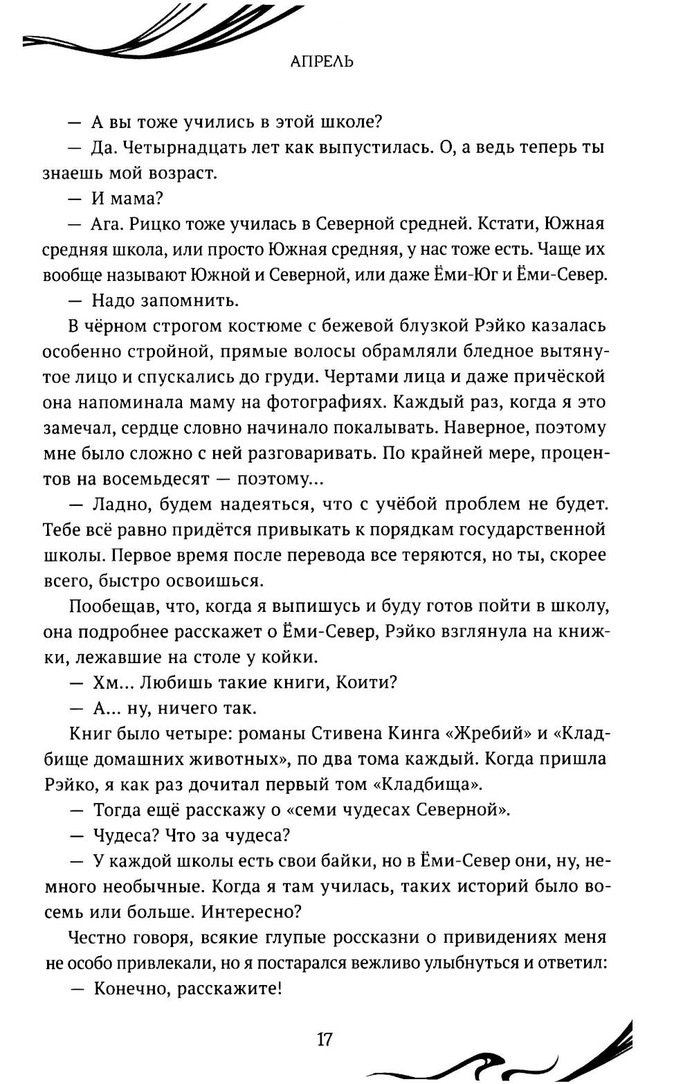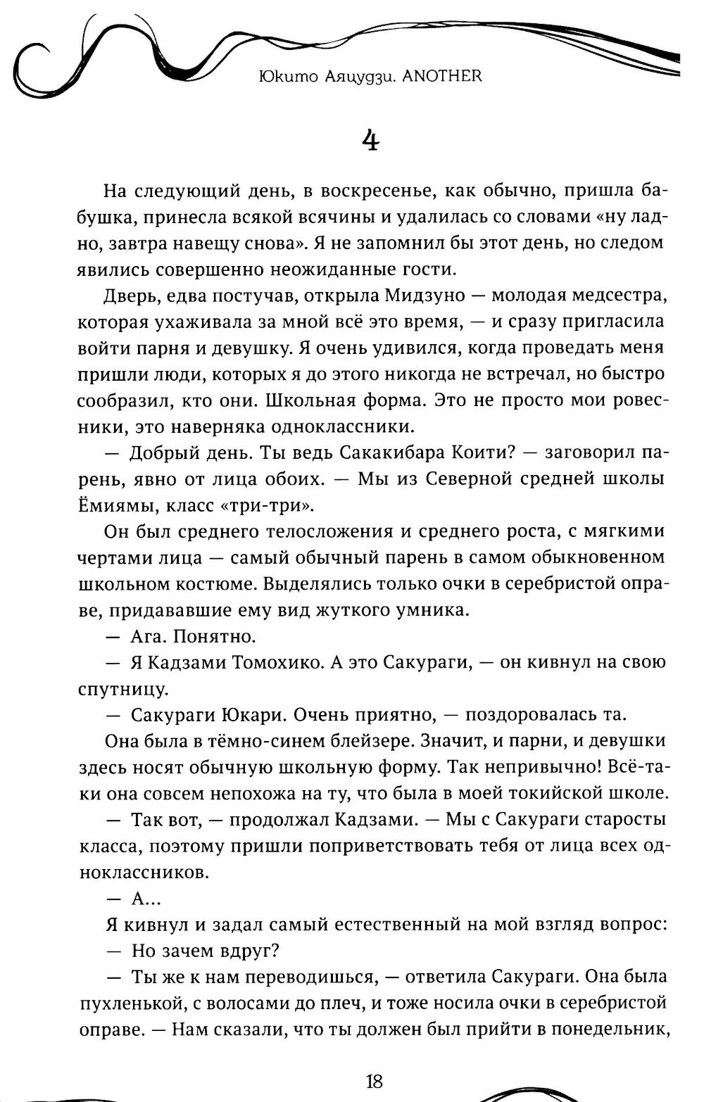 «Кто м е р т в е ц ?» Сакакибара Коити перевёлся в класс «три-три» Северной средней школы Ёмиямы и тут же почувствовал: с одноклассниками что-то не так, они будто чего-то боятся. Очарованный загадочной одноклассницей Мисаки Мэй, Коити попытался с ней пообщаться, но лишь обнаружил ещё больше загадок. Тем временем погибла чудовищной смертью староста класса Сакураги, а после ученики и их близкие начали умирать один за другим. Что же случилось в крохотном мирке Ёмиямы? Эта книга покажет вам ужас, какого вы никогда ещё не испытывали, и великое множество тайн, которые не позволят от неё оторваться. Встречайте шедевр конца двухтысячных мастера Юкито Аяцудзи - сплав романа ужасов и детектива-хонкаку! Книга содержит два оригинальных тома романа.| Издательство | ИД Истари Комикс |