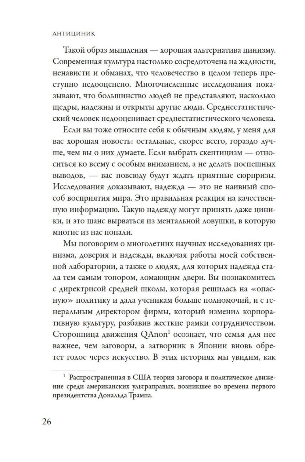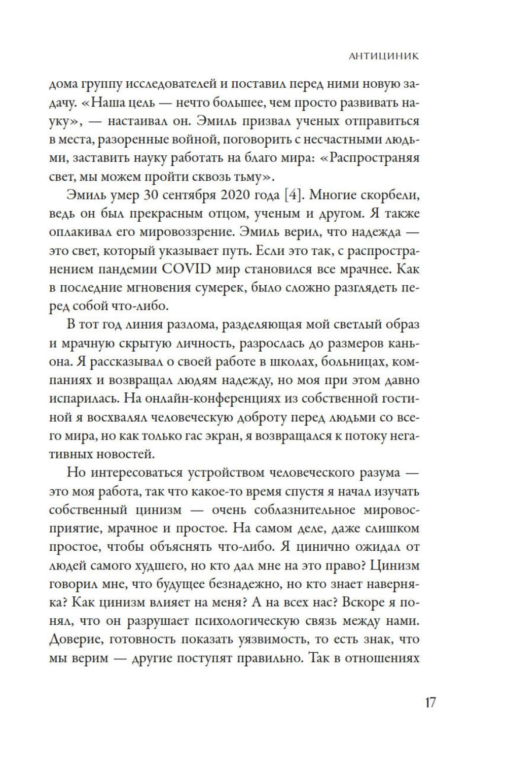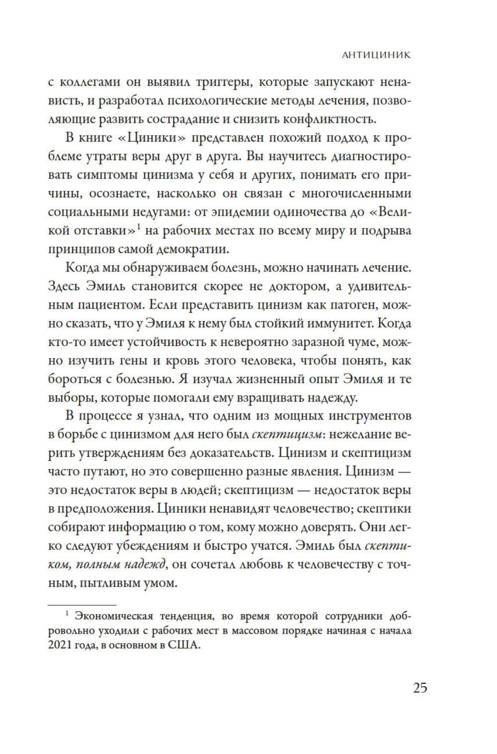 Если вы считаете надежду наивной, а цинизм - мудрым, приготовьтесь передумать. Эта книга - луч света в темные дни. Адам Грант, автор бестселлера «Подумайте еще раз» Цинизм давно стал символом ума. Но что, если ваш «трезвый взгляд на вещи» - главная причина усталости и одиночества? Ведь чаще всего за цинизмом прячется самый чуткий человек. Просто он испытал слишком много боли и теперь пытается защититься, отвергая свои чувства и общество. Профессор Джамиль Заки, опираясь на науку и личный опыт, станет проводником на пути к себе. Потому что уверен: надежда и вера в добро всегда сильнее цинизма. Эта книга вернет вам: • смелость доверять, оставаясь бдительным; • ясный взгляд на возможности, которые другие считают угрозами; • энергию для реальных действий вместо бесконечного анализа рисков. Вы не сломлены. Вы просто устали защищаться. Дайте себе шанс снова влюбиться в мир.