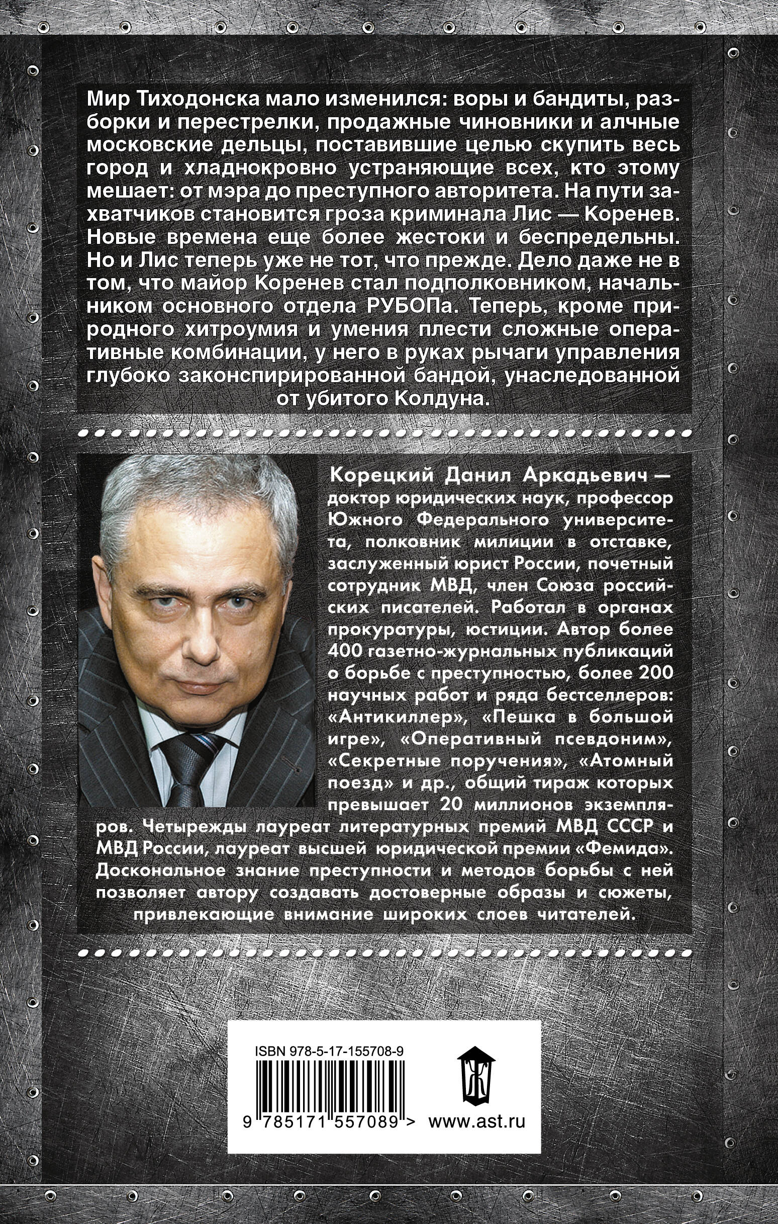 Мир Тиходонска мало изменился: воры и бандиты, разборки и перестрелки, продажные чиновники и алчные московские дельцы, поставившие целью скупить весь город и хладнокровно устраняющие всех, кто этому мешает: от мэра до преступного авторитета. На пути захватчиков становится гроза криминала Лис - Коренев. Новые времена еще более жестоки и беспредельны. Но и Лис теперь уже не тот, что прежде. Дело даже не в том, что майор Коренев стал подполковником, начальником основного отдела РУБОПа. Теперь, кроме природного хитроумия и умения плести сложные оперативные комбинации, у него в руках рычаги управления глубоко законспирированной бандой, унаследованной от убитого Колдуна.| Издательство | ИЗДАТЕЛЬСТВО "АСТ" |