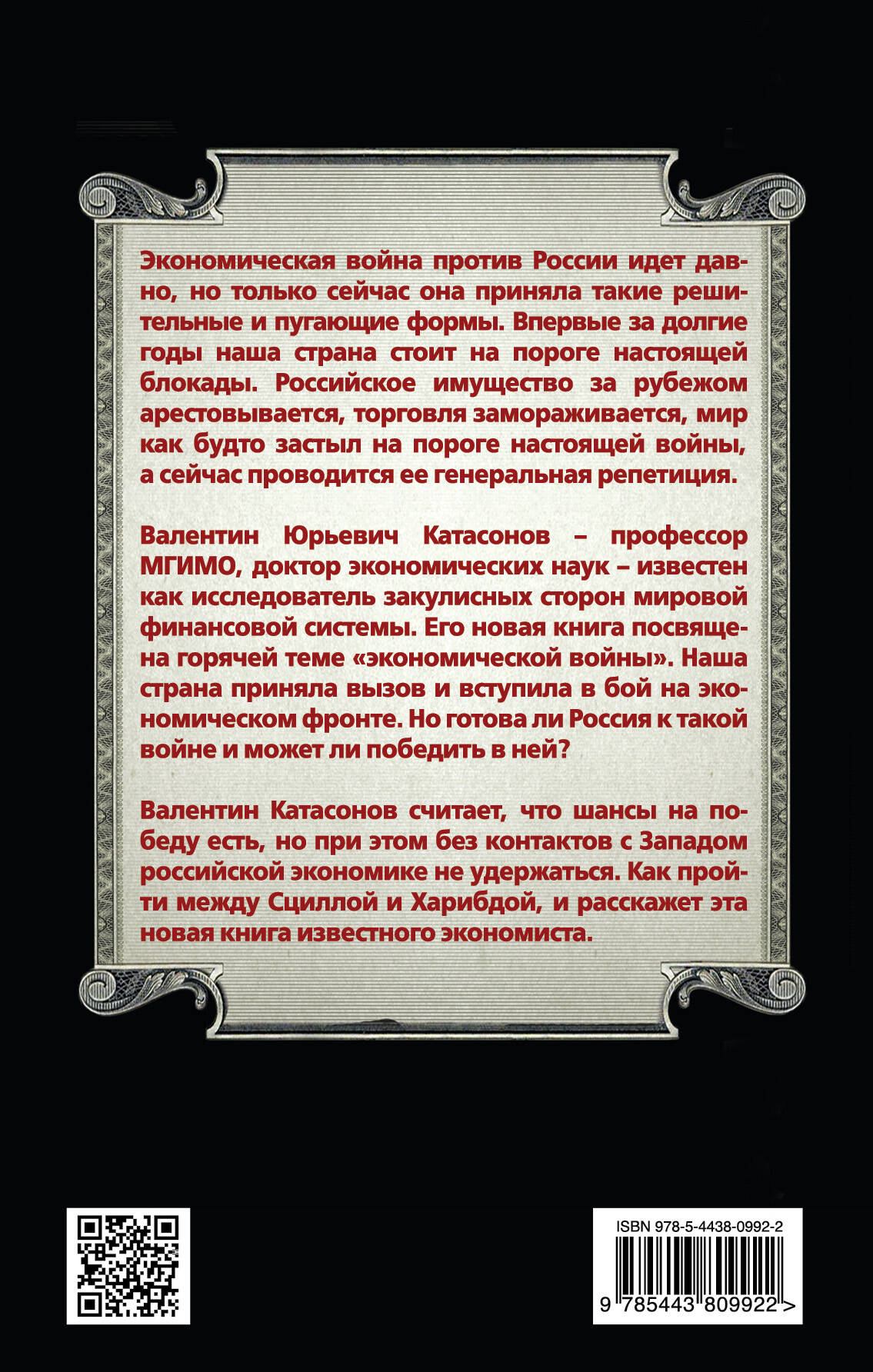 Экономическая война против России идет давно, но только сейчас она приняла такие решительные и пугающие формы. Впервые за долгие годы наша страна стоит на пороге настоящей блокады. Российское имущество за рубежом арестовывается, торговля замораживается, мир как будто застыл на пороге настоящей войны, а сейчас проводится ее генеральная репетиция. Валентин Юрьевич Катасонов - профессор МГИМО, доктор экономических наук, - известен как исследователь закулисных сторон мировой финансовой системы. Его новая книга посвящена горячей теме "экономической войны". Наша страна приняла вызов и вступили в бой на экономическом фронте. Но готова ли Россия к такой войне и может ли победить в ней? Валентин Катасонов считает, что шансы на победу есть, но при этом без контактов с Западом российской экономике не удержаться. Как пройти между Сциллой и Харибдой и расскажет эта новая книга известного экономиста.| Издательство | ТД Алгоритм ООО |