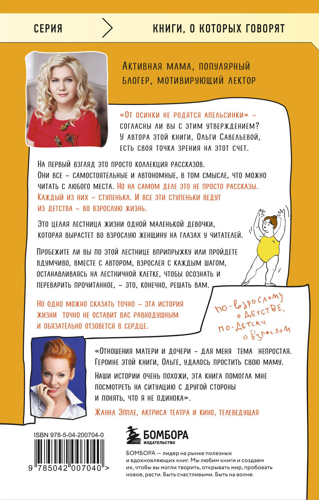 «Отношения матери и дочери - для меня тема непростая. Героине этой книги, Ольге, удалось простить свою маму. Наши истории очень похожи, эта книга помогла мне посмотреть на ситуацию с другой стороны и понять, что я не одинока». - Жанна Эппле, актриса театра и кино, телеведущая| Издательство | ООО "Издательство "Эксмо" |