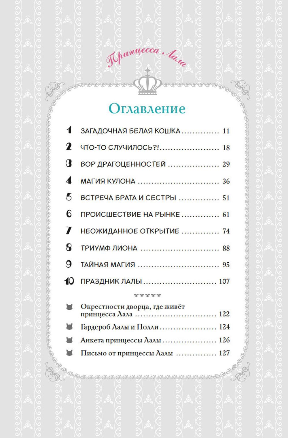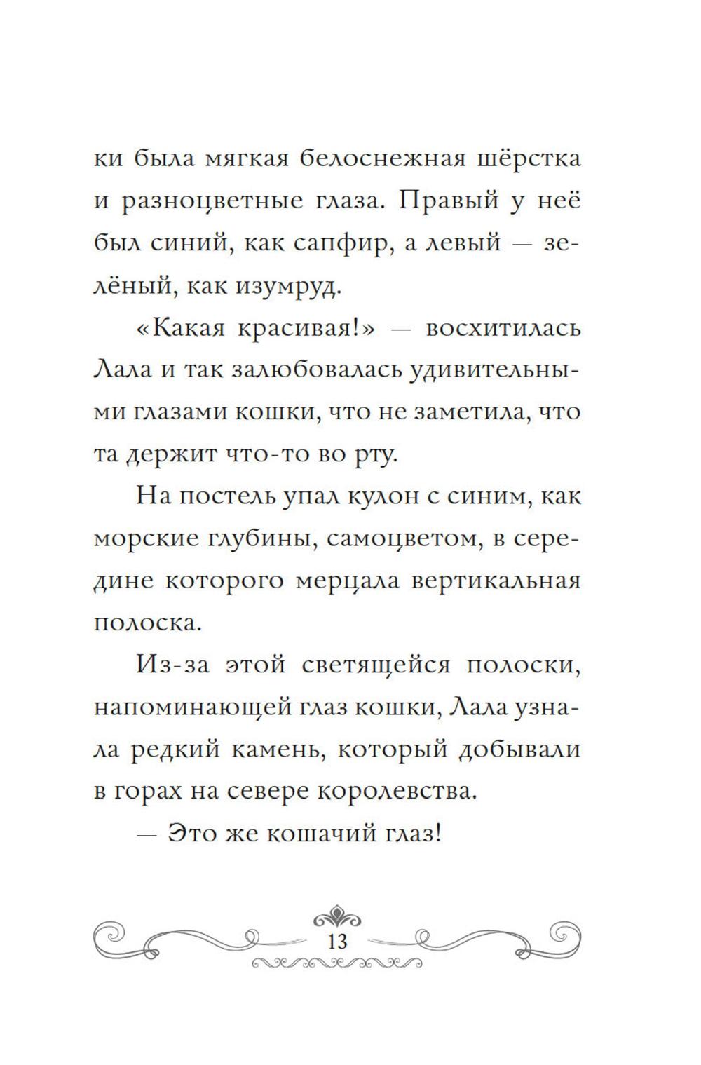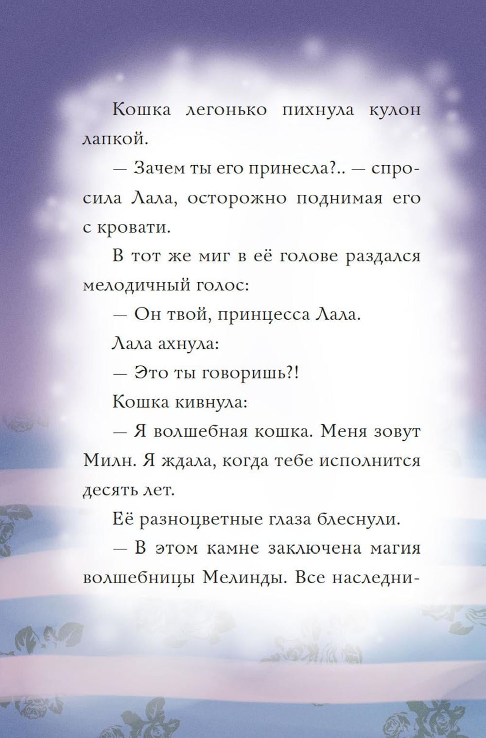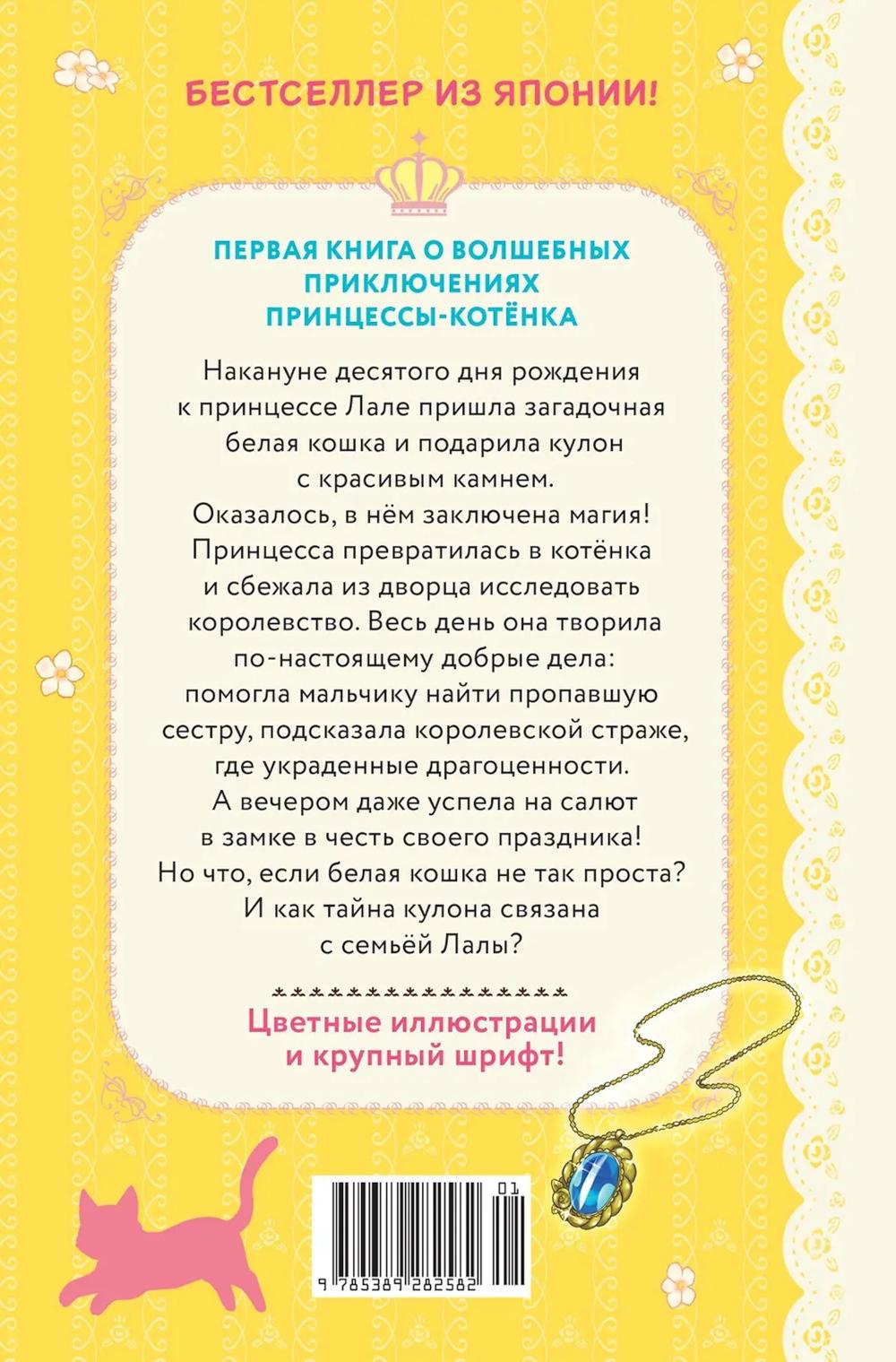 Накануне десятого дня рождения к принцессе Лале пришла загадочная белая кошка и подарила кулон с красивым камнем. Оказалось, в нём заключена магия! Принцесса превратилась в котёнка и сбежала из дворца исследовать королевство. Весь день она творила по-настоящему добрые дела - помогла мальчику найти пропавшую сестру, подсказала королевской страже, где украденные драгоценности. А вечером даже успела на салют в замке в честь своего праздника! Но что, если белая кошка не так проста? И как тайна кулона связана с семьёй Лалы?| Издательство | Махаон |
