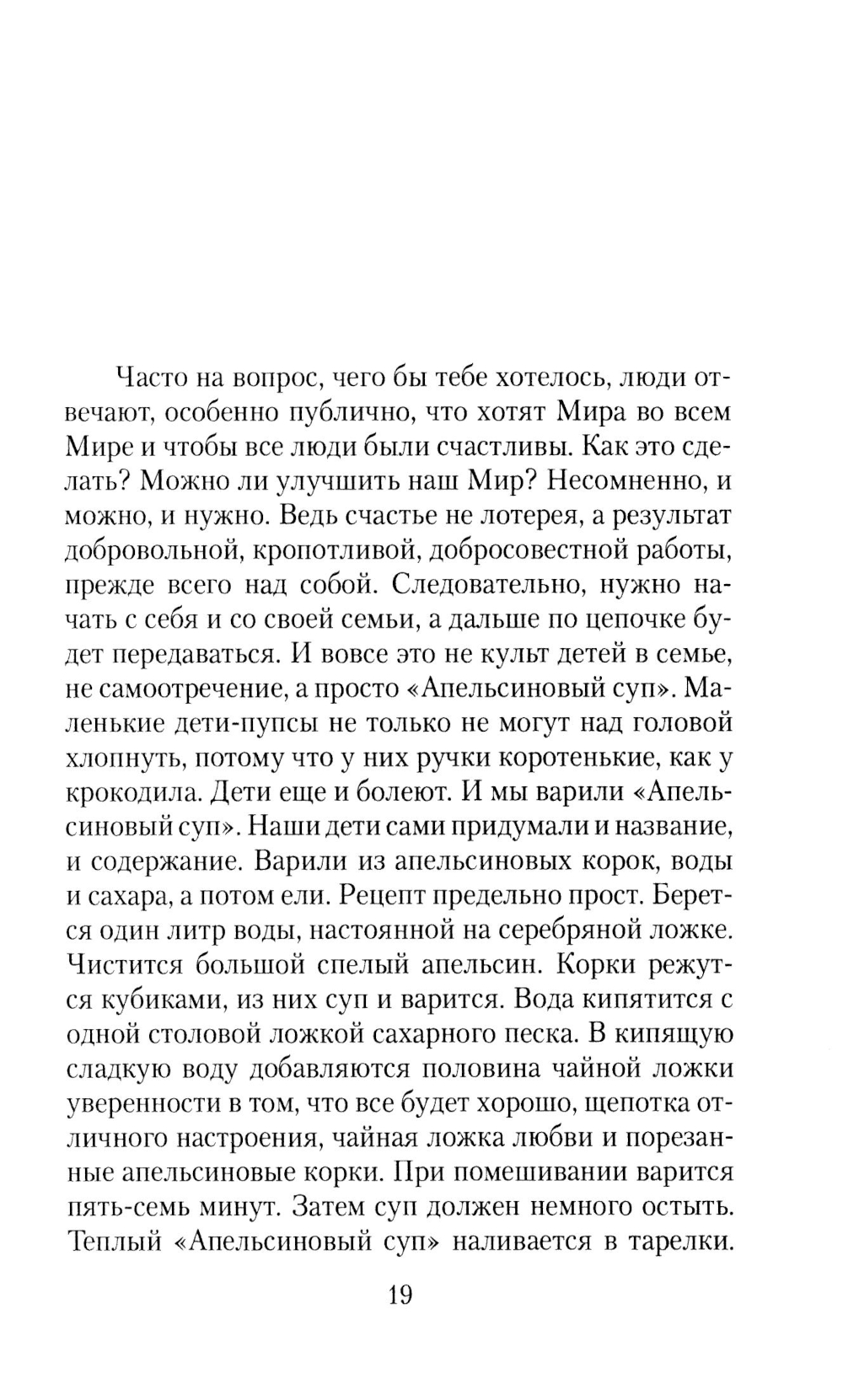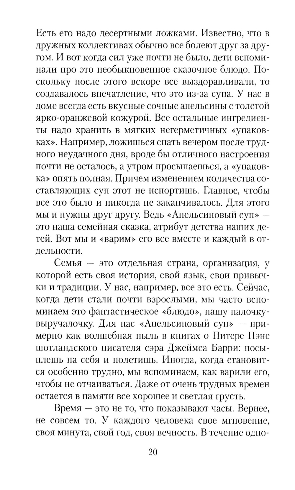 Эта книга посвящена жизненно важной проблеме воспитания детей. Автор, анализируя собственный опыт, доверительно рассказывает о том, что растить и воспитывать детей это не изнурительная обязанность родителей, а процесс творческий, порой очень сложный, но всегда необыкновенно увлекательный. В книге нет готовых рецептов, потому что, как справедливо утверждает Вера Мир, дети взрослеют по-разному. Очень важно помочь ребенку найти свое место в жизни. И главная роль в этом процессе принадлежит семье. А каждая семья это целый мир со своими традициями, привычками, особенностями общения, со своим языком. Главное, помнить, что хорошие дети получаются в результате кропотливой работы родителей над собой и уважительного отношения друг к другу и к детям. И если вы хотите, чтобы ваши дети дружили по-настоящему, а не только делали вид при родителях, прочитайте «Апельсиновый суп», и вы поймете, что нужно сделать...| Издательство | ИПО "У Никитских ворот" |