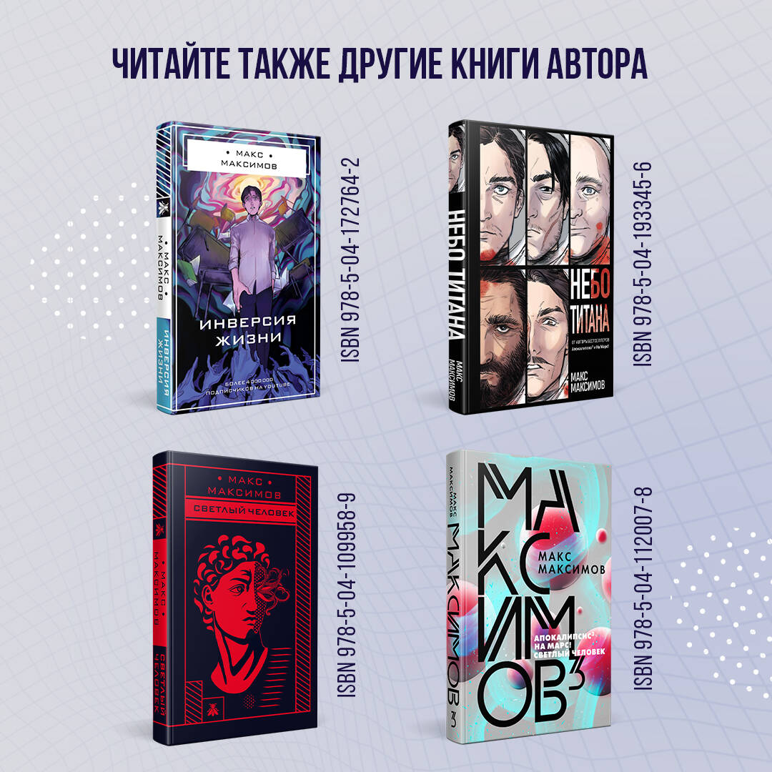 Max Maximov популярный видеоблогер. Количество просмотров на YouTube-канале Max Maximov превышает 1 700 000. Реклама на ресурсе автора и не только! Широкомасштабная кампания продвижения. Постапокалипсис, Young adult., психологическая драма под одной обложкой. Острый сюжет, близкие и понятные молодому читателю персонажи.| Издательство | ООО "Издательство "Эксмо" |