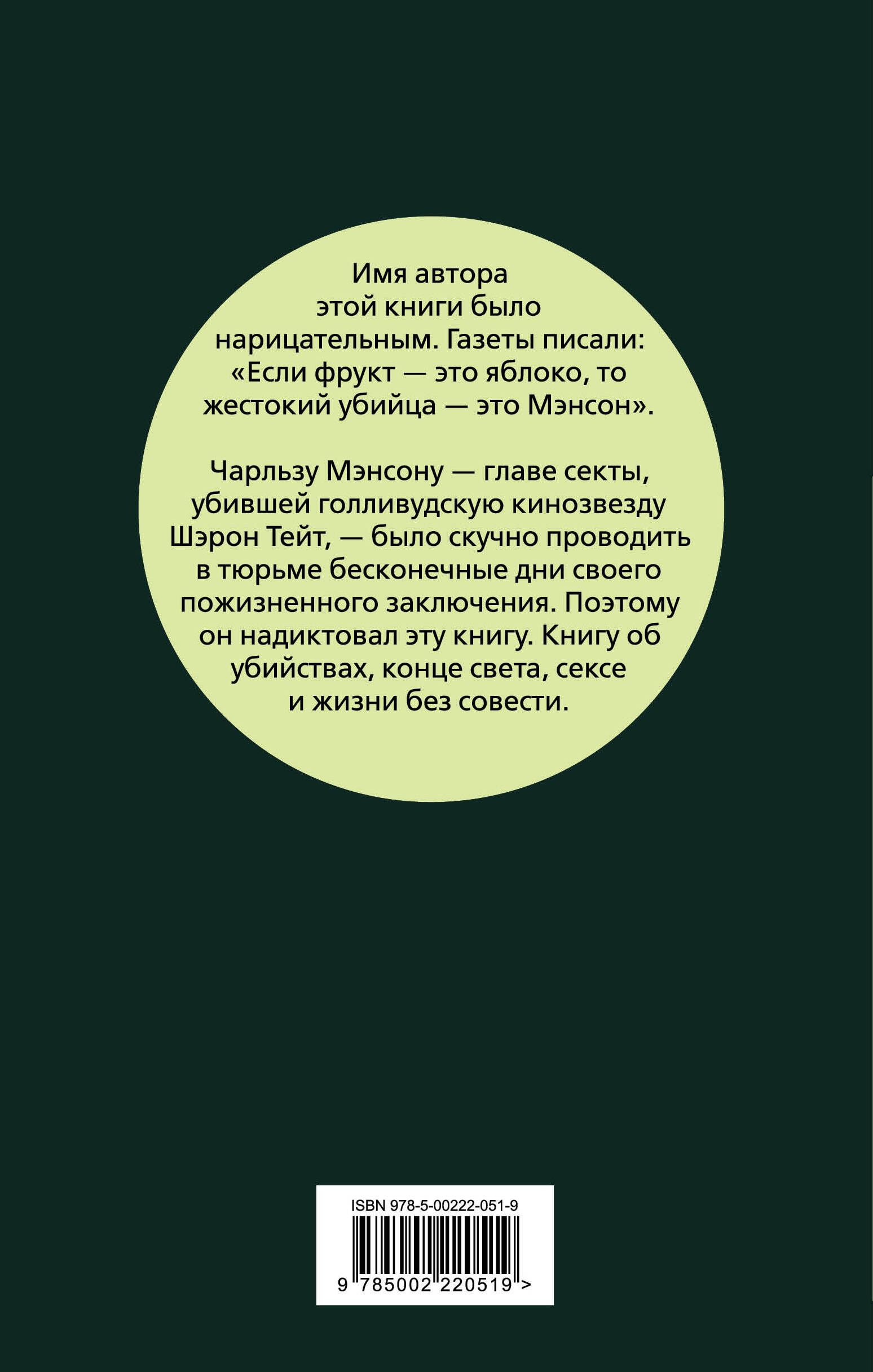 Имя автора этой книги было нарицательным. Газеты писали: «Если фрукт - это яблоко, то жестокий убийца - это Мэнсон». Чарльзу Мэнсону - главе секты, убившей голливудскую кинозвезду Шэрон Тейт - было скучно проводить в тюрьме бесконечные дни своего пожизненного заключения. Поэтому он надиктовал эту книгу. Книгу об убийствах, конце света, сексе - и жизни без совести.| Издательство | Родина Издательство ООО |
