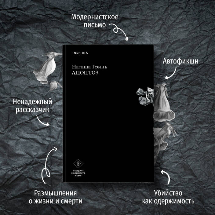 Молодая преподавательница французского впервые сталкивается со смертью на похоронах своей бабушки, после чего каждодневный страх смерти полностью поглощает ее жизнь. Страх превращается в желание отомстить миру и Богу за свою смертность, а желание приводит к действию, навязчивому и неотвратимому. «Апоптоз» - дебютный роман Наташи Гринь. Экспериментальный текст, где детально исследуются извечные вопросы жизни и смерти. Об авторе: Филолог, преподаватель, переводчик с французского языка, редактор. Родилась и выросла в закрытом городе Озёрске Челябинской области. Закончила филологический факультет НИУ ВШЭ. Сейчас живет в Москве и Париже.| Издательство | ООО "Издательство "Эксмо" |