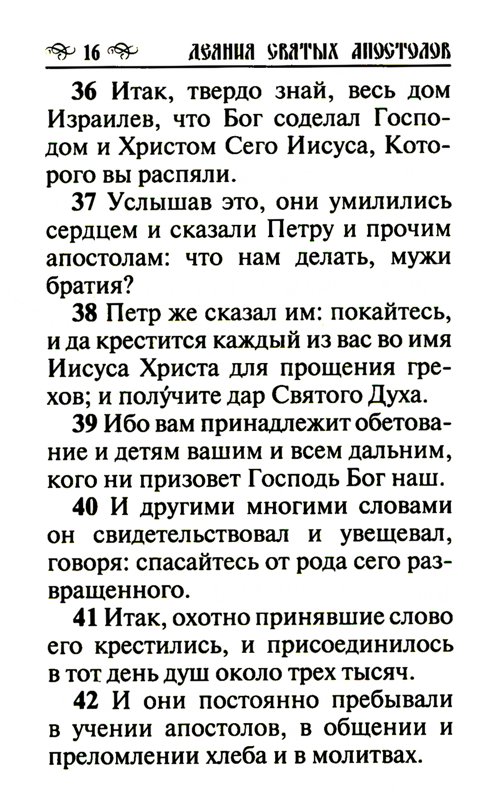 Апостол на русском языке в Синодальном переводе. Издание удобного малого формата. Текст отпечатан стандартным шрифтом. Использован твердый переплет с тиснением золотой фольгой, качественная офсетная бумага. По благословению Святейшего Патриарха Московского и всея Руси Кирилла.| Издательство | Скрижаль |