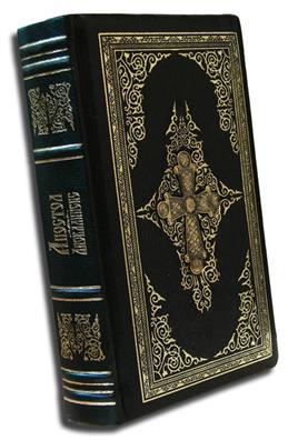Апостол. Апокалипсис на русском языке в кожаном переплете с накладным крестом