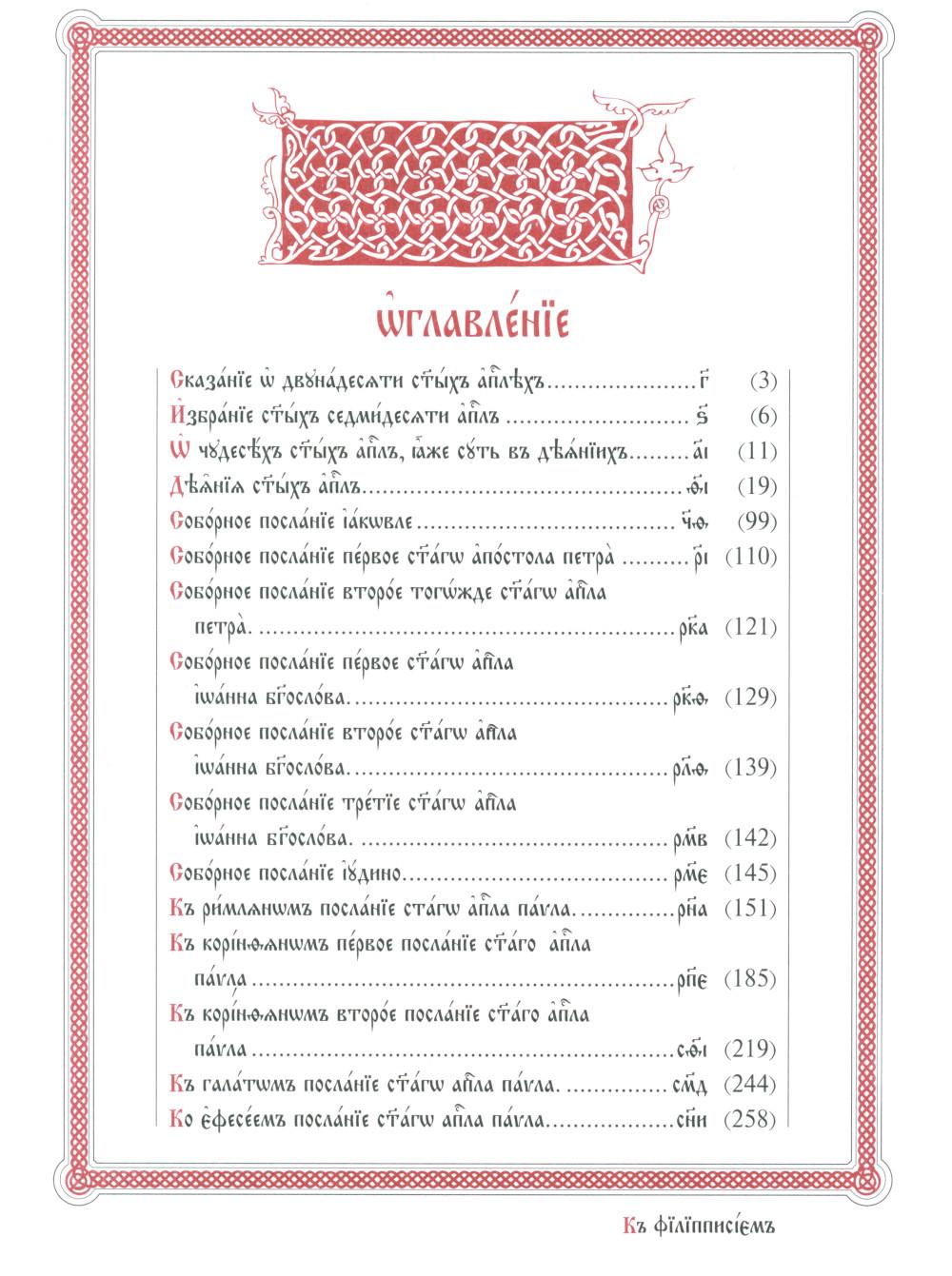 Апостол богослужебный большого формата в кожаном переплете с тиснением золотой и серебряной фольгой, напечатанный в два цвета, содержит деление по зачалам, указания будничных и праздничных апостольских чтений на каждый день года, указания об антифонах и о прокимнах. Издание с золотым обрезом блока для удобства снабжено ленточкой-закладкой.| Издательство | Белорусская Православная церковь |