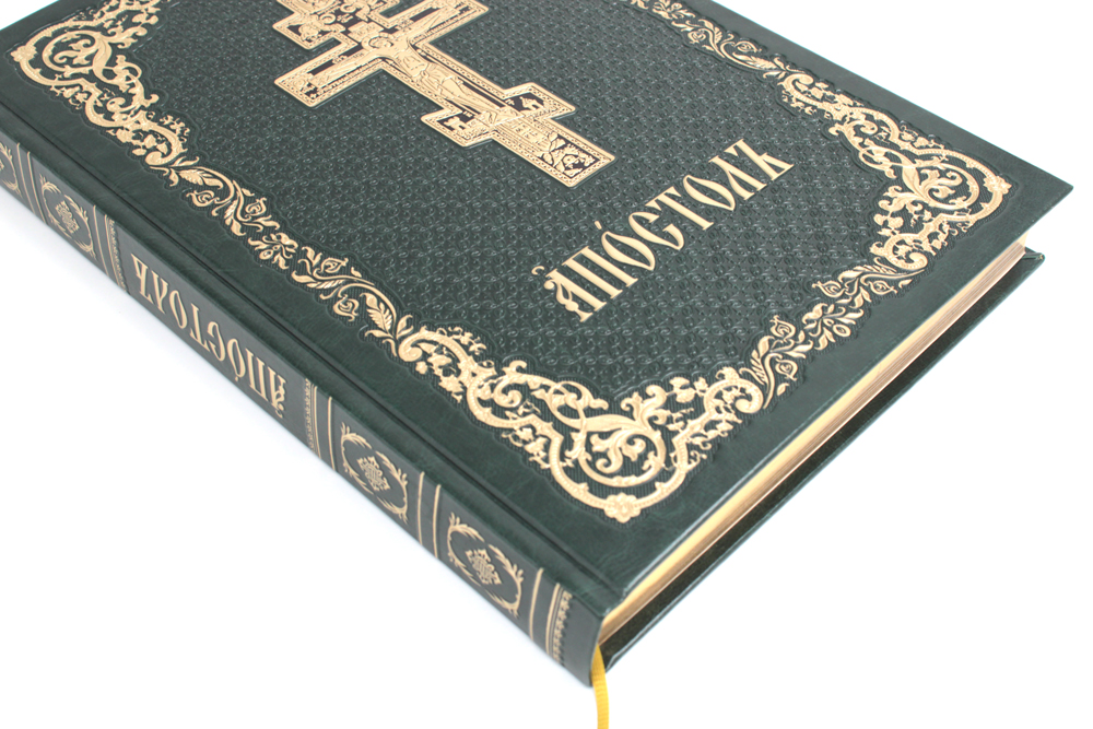Апостол: на церковнославянском языке. 4-е изд (кожа, б/формат, золот.обрез, тиснен., цв. зеленый)
